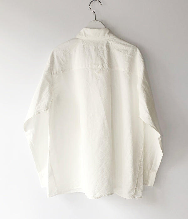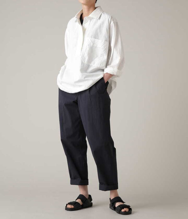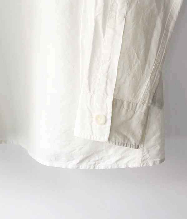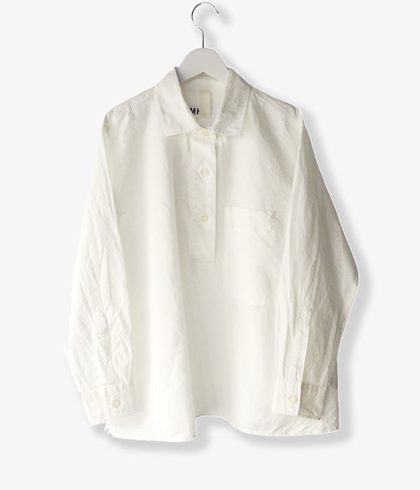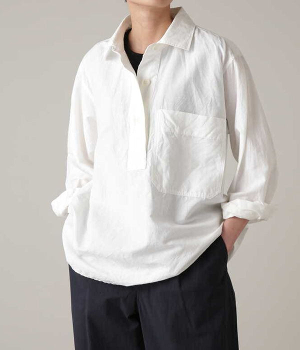 MHL.から、LIGHTWEIGHT COTTON LINEN WOMENSが入荷しました。タテ糸にコットン 、 ヨコ糸にコットンリネンを使用した素材のシャツ。メンズシャツのような大きめの胸ポケットがポイント。襟付きのプルオーバーに仕上げました。脇裾のガゼットが軽やかなフレアシルエットを表現し、様々なボトムスと合わせやすい一着。