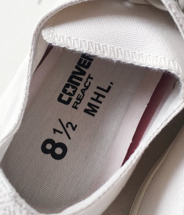 MHL. x CONVERSEより"ALL STAR 100"をベースとしたリミテッドモデルに、待望のローカットが登場。踵のヘリンボーンテープや、やや細身に仕上げたオーセンティックなコットンシューレースなど、随所に拘りが詰まった一足。また、CONVERSEオリジナルのカップインソール"REACT"を搭載し、クッション性やフィット感に優れ、履き心地も別格の仕上がり。こちらはLADYS SIZEとなります。