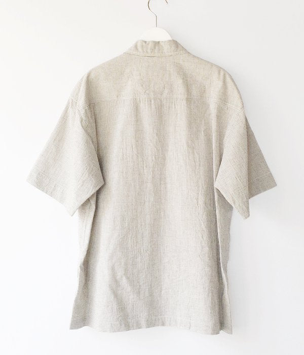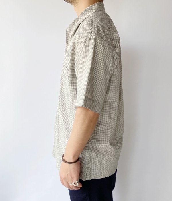 MHL.から、NATURAL WASHED COTTON LINEN SS SHIRTが入荷しました。コットンとリネンをブレンドした清涼感のある素材による半袖シャツ。台襟を設けず、やや下へずらした第一ボタンが緩い印象の襟周りを演出します。留めボタンをあしらった大きなバストポケットがアクセントに。