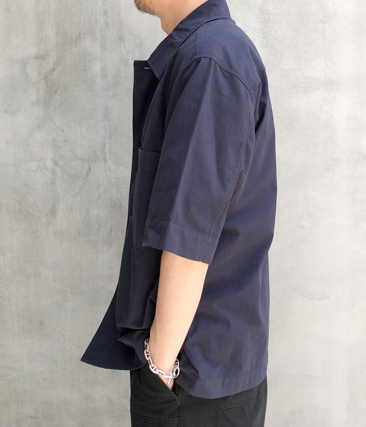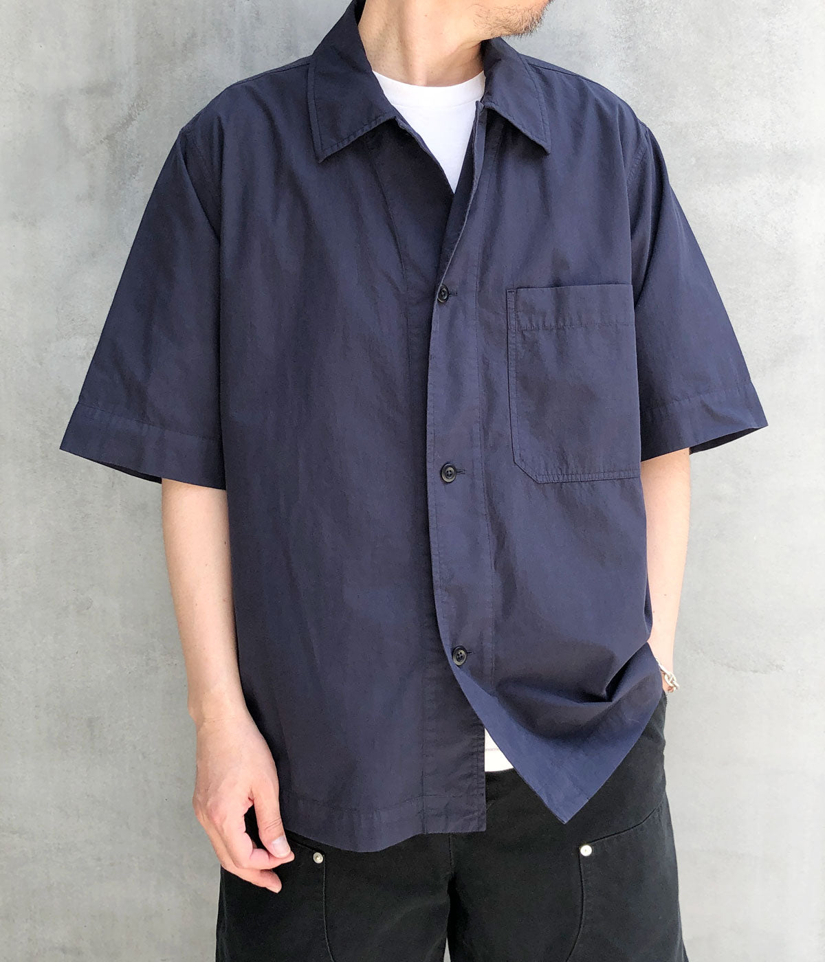 MHL.から、ORGANIC COTTON SHIRTING SHIRTが入荷しました。密度に織り上げたオーガニックコットン製の生地にワッシャー加工を施し、洗いざらし感のあるナチュラルな表情が特徴の半袖シャツ。ワーク感のある襟周りから、大きなバストポケット、サイドのスリットなどのディティールがポイント。幅広シルエットに長めの袖丈に設計したデザイン。