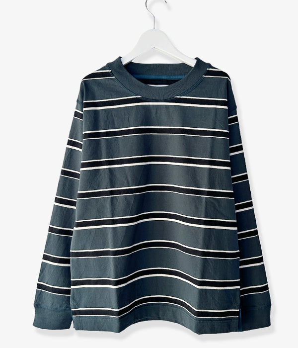 MHL.から、OUTLINE STRIPE JERSEY LSが入荷しました。ドライな質感と伸縮性が特徴のコットン素材を使用したボーダー柄ロングTシャツ。1本ずつそれぞれ幅が微妙に異なる独特のタッチのボーダーで構成される凝ったデザイン。ネック周り、袖口はリブ仕様、サイドにスリットをあしらった作り。