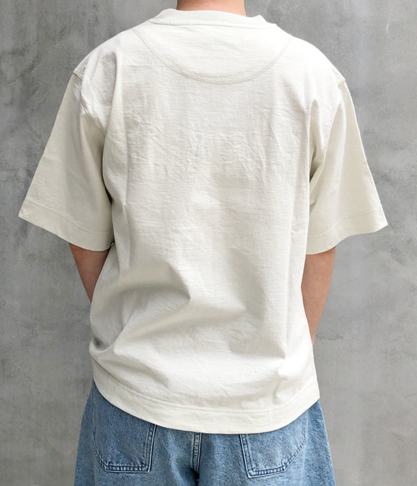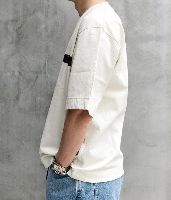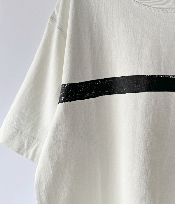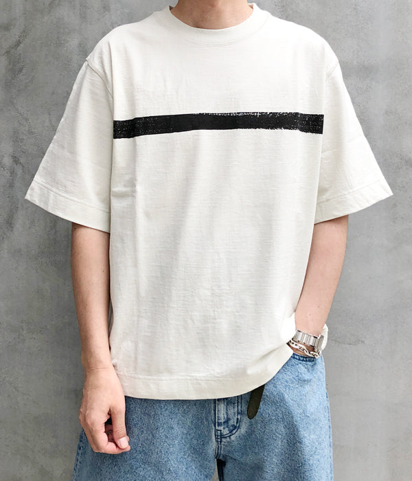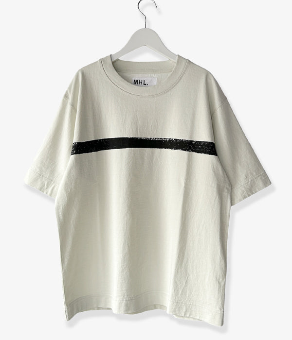 MHL.から、PAINTED DRY COTTON JERSEY SSが入荷しました。適度な厚みとドライな質感がポイントのコットン製SS Tシャツ。ひと筆書きで描かれた横一文字のプリントデザインがインパクトを与えるデザイン。各所のバインダーステッチがアクセントに。