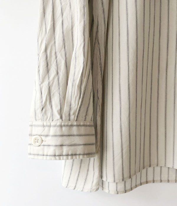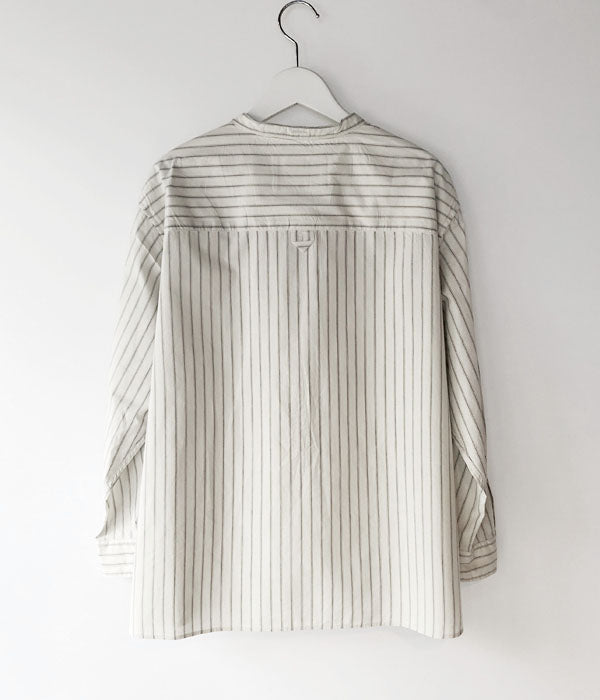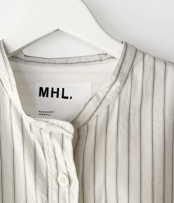 MHL.から、PJ STRIPE COTTON SHIRTING ST SHIRT WOMENSが入荷しました。柔らかな質感のコットン生地を使用したスタンドカラーシャツ。ピンストライプ柄にゆったりとしたサイジングに仕立て、プルオーバーに仕上げました。羽織りとしても着まわしやすい1着です。