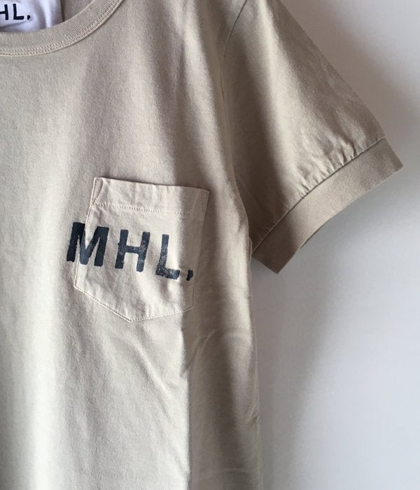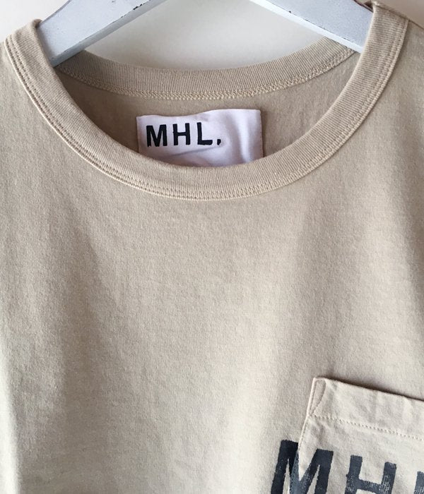 柔らかく洗いの掛かった質感が特徴のMHL.オリジナル生地を使用したBASIC T-SHIRT。斜めに配置したスラントポケット上にMHL.LOGOが入ります。