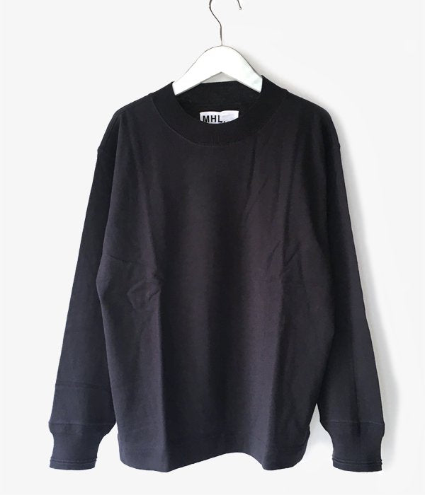 MHL.から、ROUGH COTTON JERSEY LSが入荷しました。ニットのような弾力性と、しっとりとした質感が特徴のコットンT-SHIRT。リブ編みに切り替えた首回りと、編地に変化を与えた細やかなデザインの袖リブがアクセント。インナーとしても使いやすくロングシーズン使える一着。