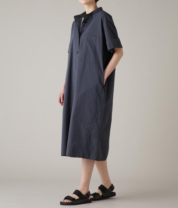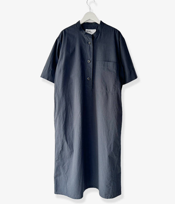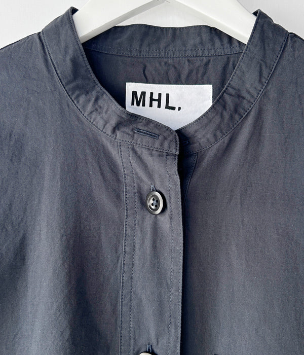 MHL.から、SANDED COTTON LINEN OPが入荷しました。コットンとリネンのミックス素材を使用したワンピース。大きな3つのボタンによるスタンドカラー、大きなバストポケット、サイドポケット付き。高密度な打ち込みによる異素材の風合いを活かした質感が魅力。