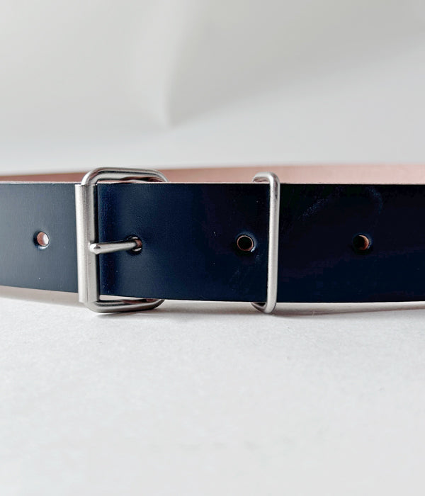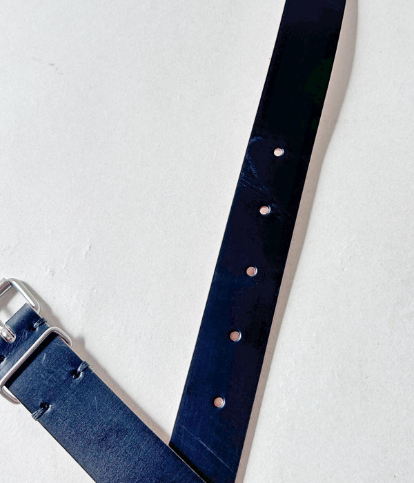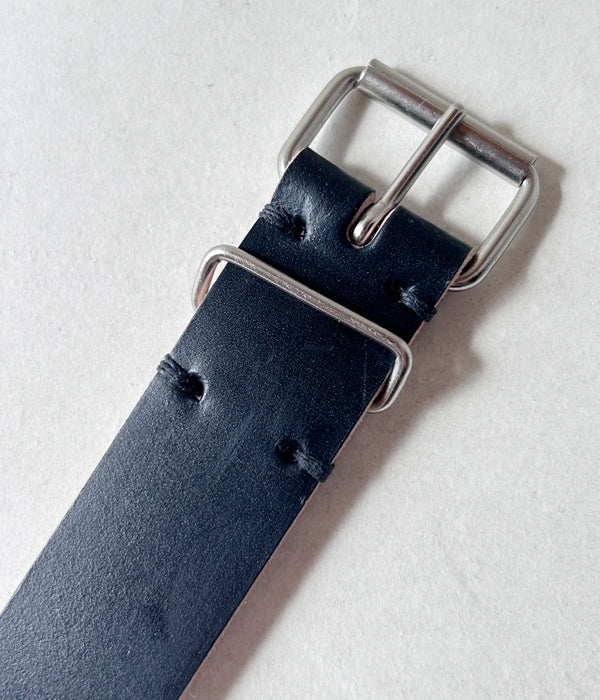 MHL.から、SIMPLE BELTが入荷しました。イングランド製の上質なレザーを使用したシンプルなデザインのベルト。ローラーバックルにより、スムーズなベルトの付け外しが可能です。太すぎず細すぎずな3cm幅に、ピン穴は5カ所設けたクラシックな仕様。
