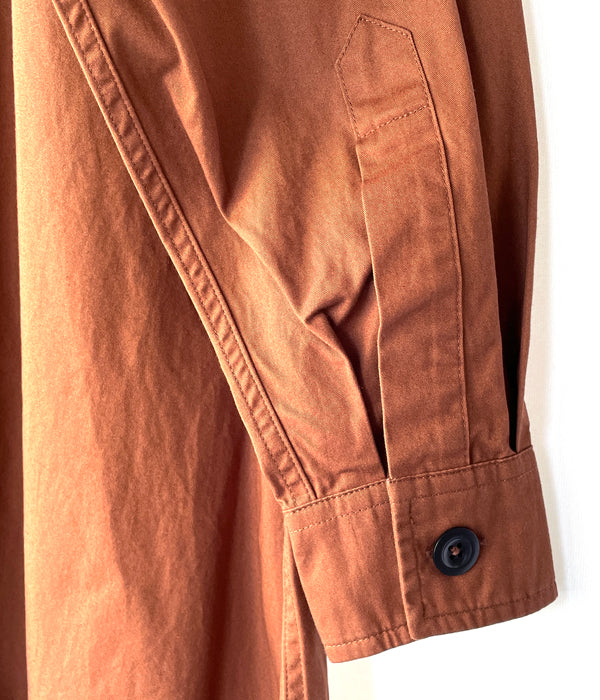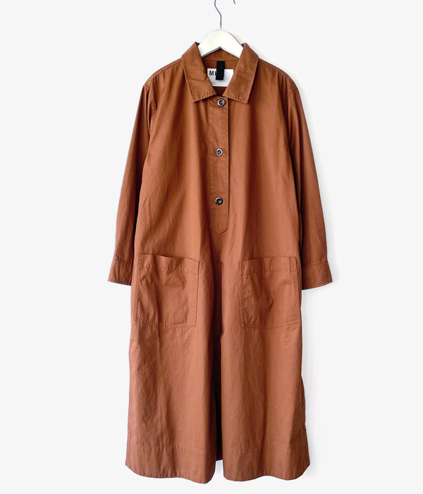MHL.から、SOFT DENSE COTTON OPが入荷しました。高密度に織り上げたツイル素材を使用したプルオーバーワンピース。表面に薄らと起毛をかけたピーチ生地が温もりを与えてくれます。ゆとりのある身幅からナチュラルなパターンで広がるフレアシルエットが動きを生み出します。大きな2か所のパッチポケットが実用性を兼ねたポイントに。