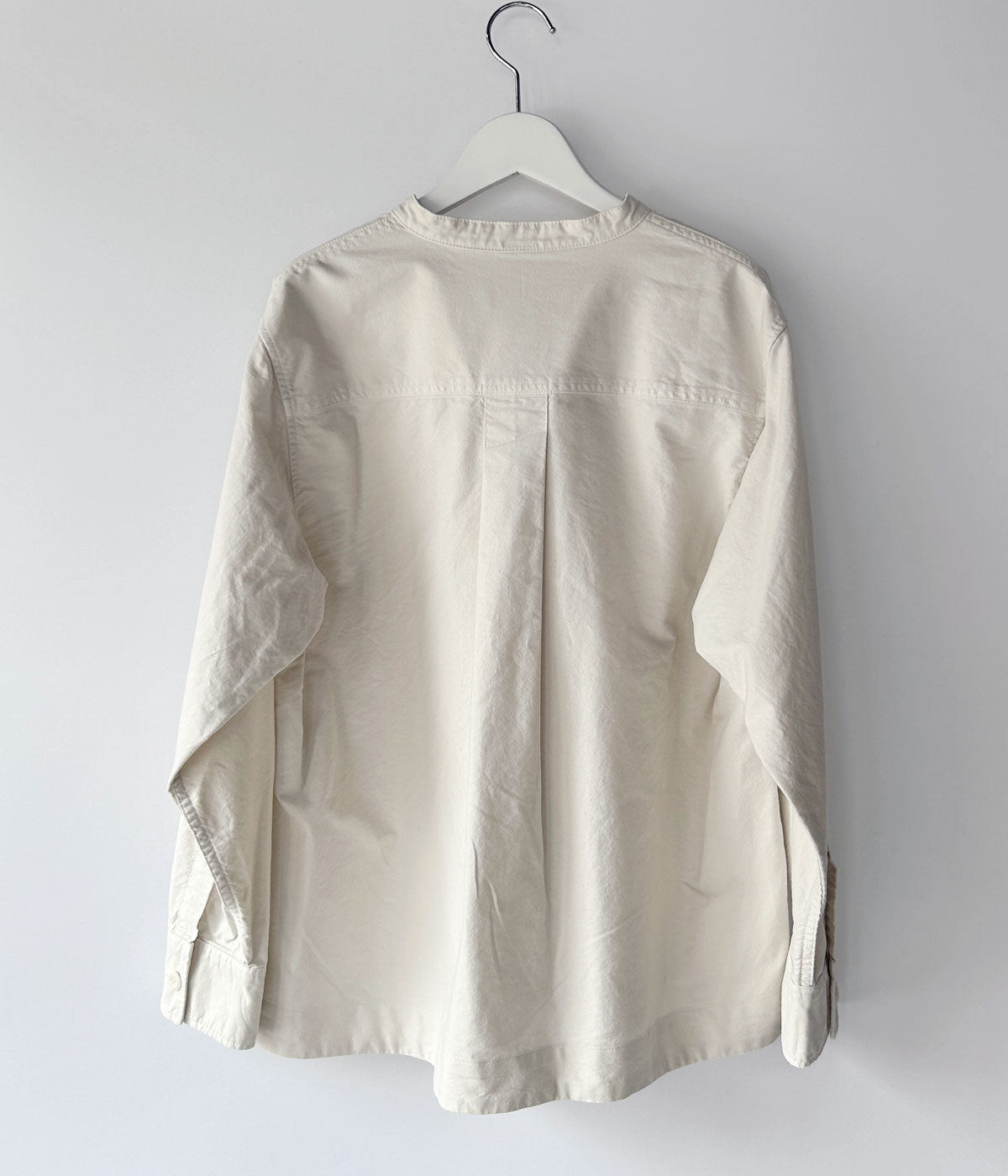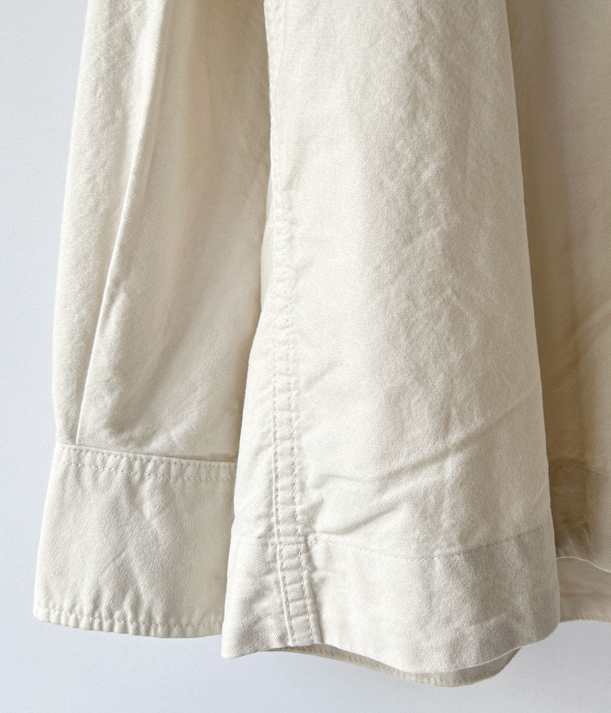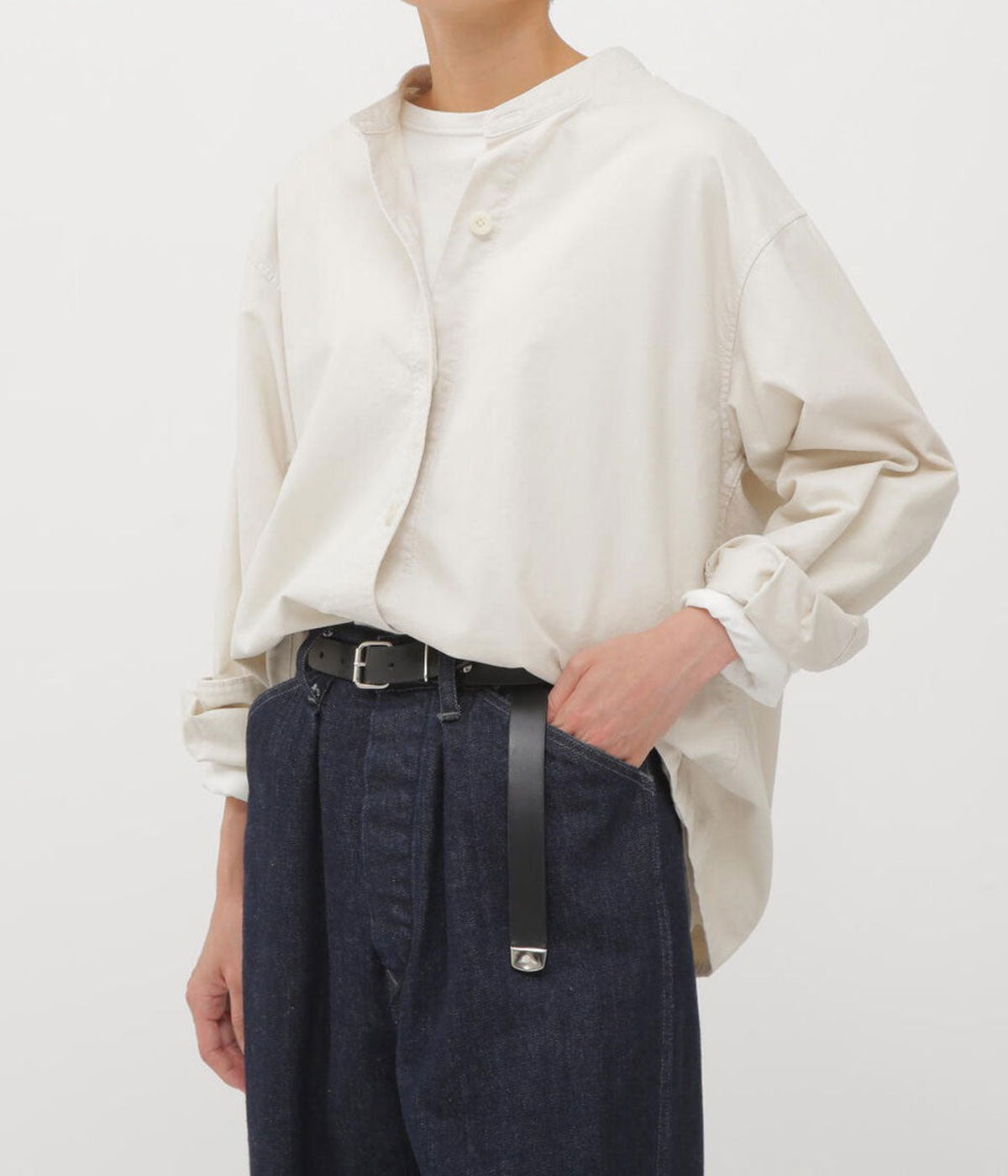 MHL.から、SOFT HOPSACK SHIRT WOMENSが入荷しました。厚手のコットンオックスに起毛加工を施したぬくもりのある質感が特徴のシャツ。スタンドカラー仕立てに、太めの前立て、ゆとりのあるAラインシルエットに仕立てた1着。