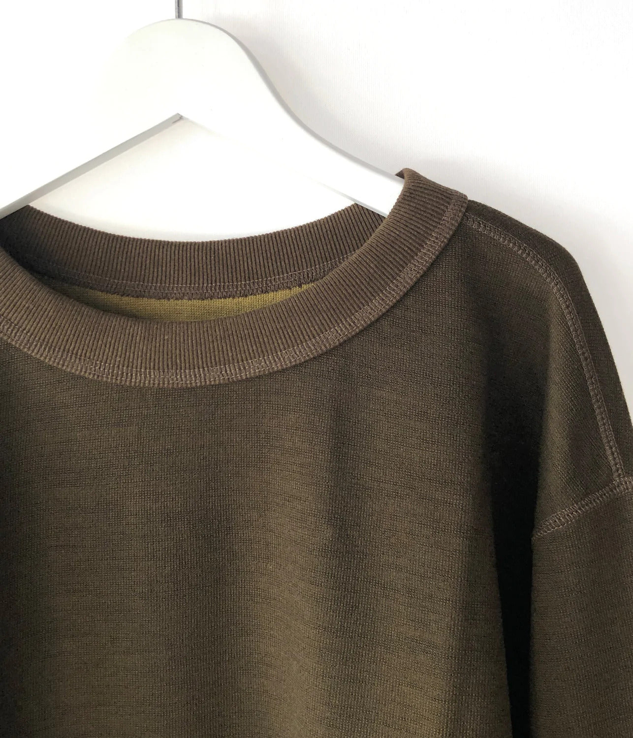MHL.から、SOFT WOOL JERSEY LS WOMENSが入荷しました。表地にウール、裏地にコットンを使用したWフェイス素材を使用したロングスリーブ。ゆったりとしたサイズ設計に加え、やや広めのネック周りなのでインナーとのレイヤードを楽しめます。存在感のあるロブデザインがアクセントに。