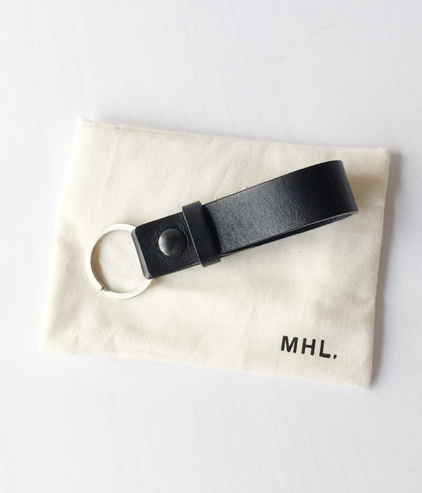 MHL.から、SOLID LEATHER KEY STRAPが入荷しました。タンニン鞣しの手法を用いた味わいのあるレザーを使用したキーストラップ。ドット釦を外してバックに取り付けたり、ウェストベルトにも装着可能な実用性の高いアイテム。内側のMHL.ロゴがワンポイント。