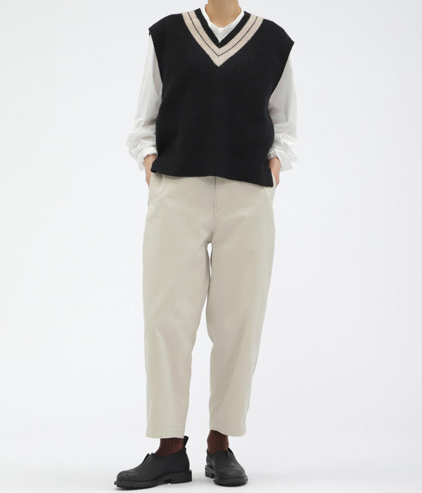 MHL.から、TOUGH WOOL RIB VEST WOMENSが入荷しました。温もりのあるニュージーランドウールを使用したVネックベスト。ネックラインに沿ったラインがポイント。裾にスリットを施し、ざっくりと着用できるサイズ感に仕立てました。