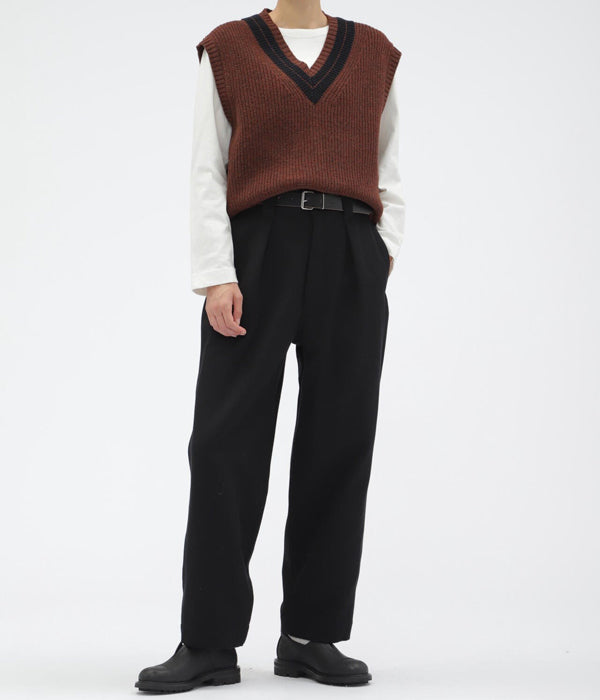 MHL.から、TOUGH WOOL RIB VEST WOMENSが入荷しました。温もりのあるニュージーランドウールを使用したVネックベスト。ネックラインに沿ったラインがポイント。裾にスリットを施し、ざっくりと着用できるサイズ感に仕立てました。