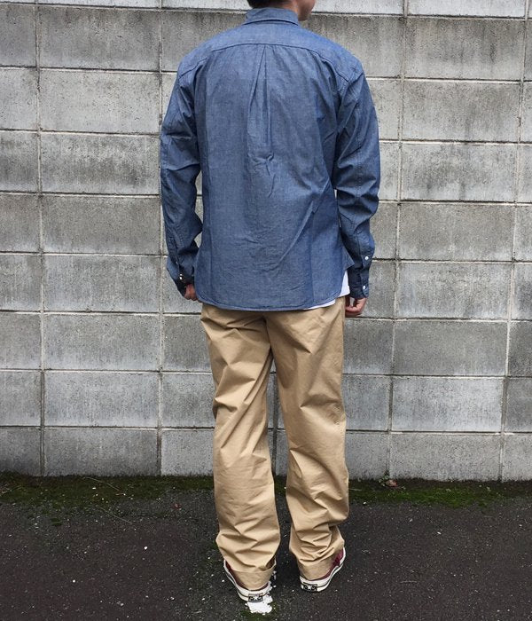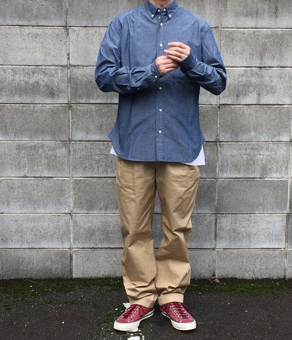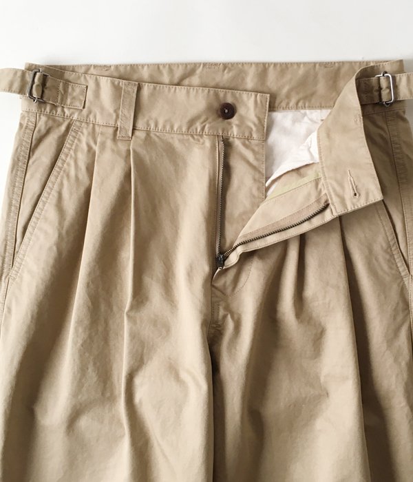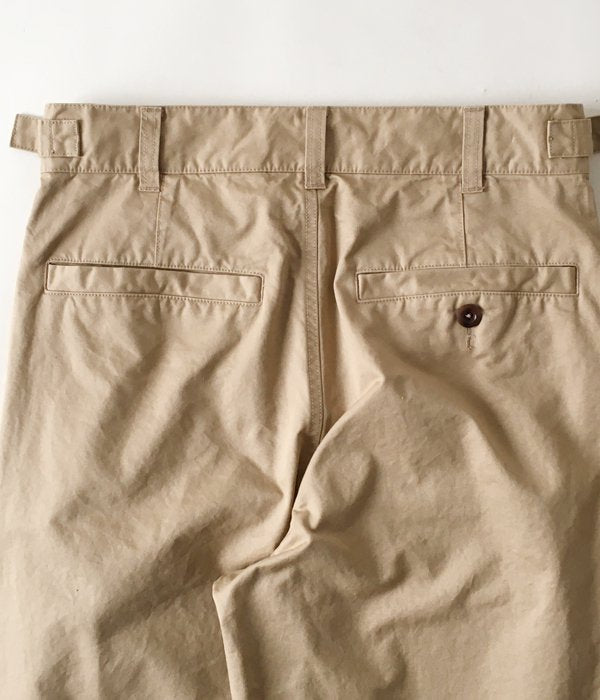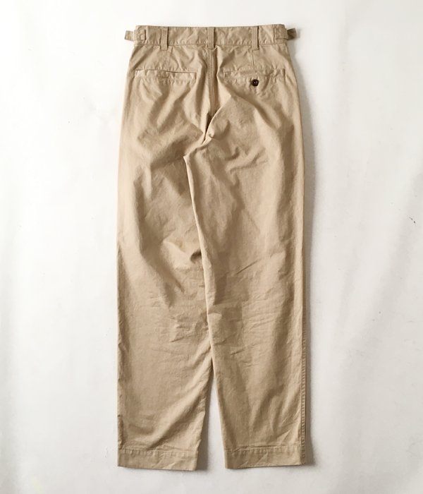 MHL.から、WASHED CHINO COTTON PANTSが入荷しました。密度の高い織り込みのコットンチノ素材に洗いをかけた独特の風合いが特徴のチノパン。タック入りのゆったりとした作りにテーパードをかけた理想的なシルエット。サイドのアジャスターでサイズの微調整が可能な作り。