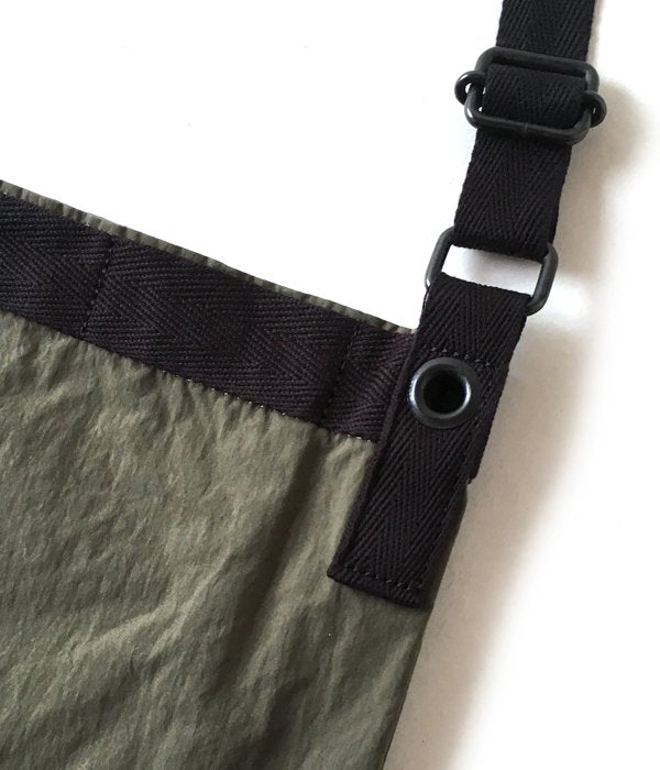 洗いの掛かったような風合いが特徴のナイロン素材を使用した小型のショルダーバッグ。インナーにジップ付きポケットを設けました。ストラップは調整可能。