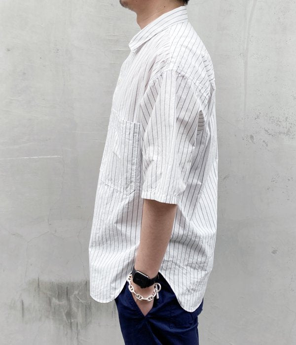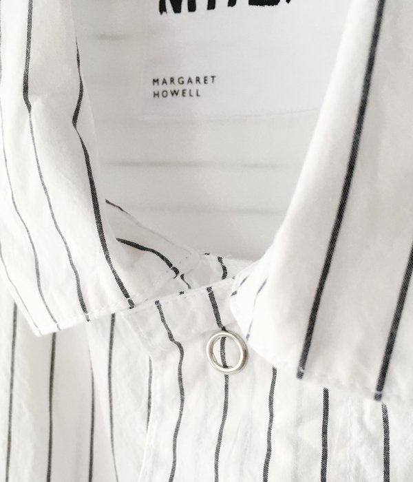 TOP > MHL. > MHL./WASHED STRIPE COTTON SS SHIRT (WHITE)