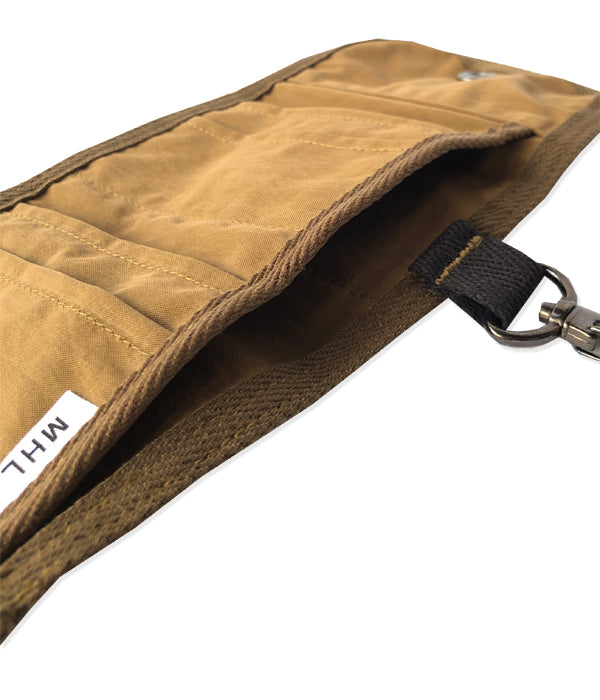 MHL.から、WORN COMPACT COTTON WALLETが入荷しました。さり気ない起毛加工とワッシャー加工を施し、タフで表情のあるコットンナイロン素材のウォレット。お札、カード、コイン収納を装備した見た目以上に頼れるアイテム。