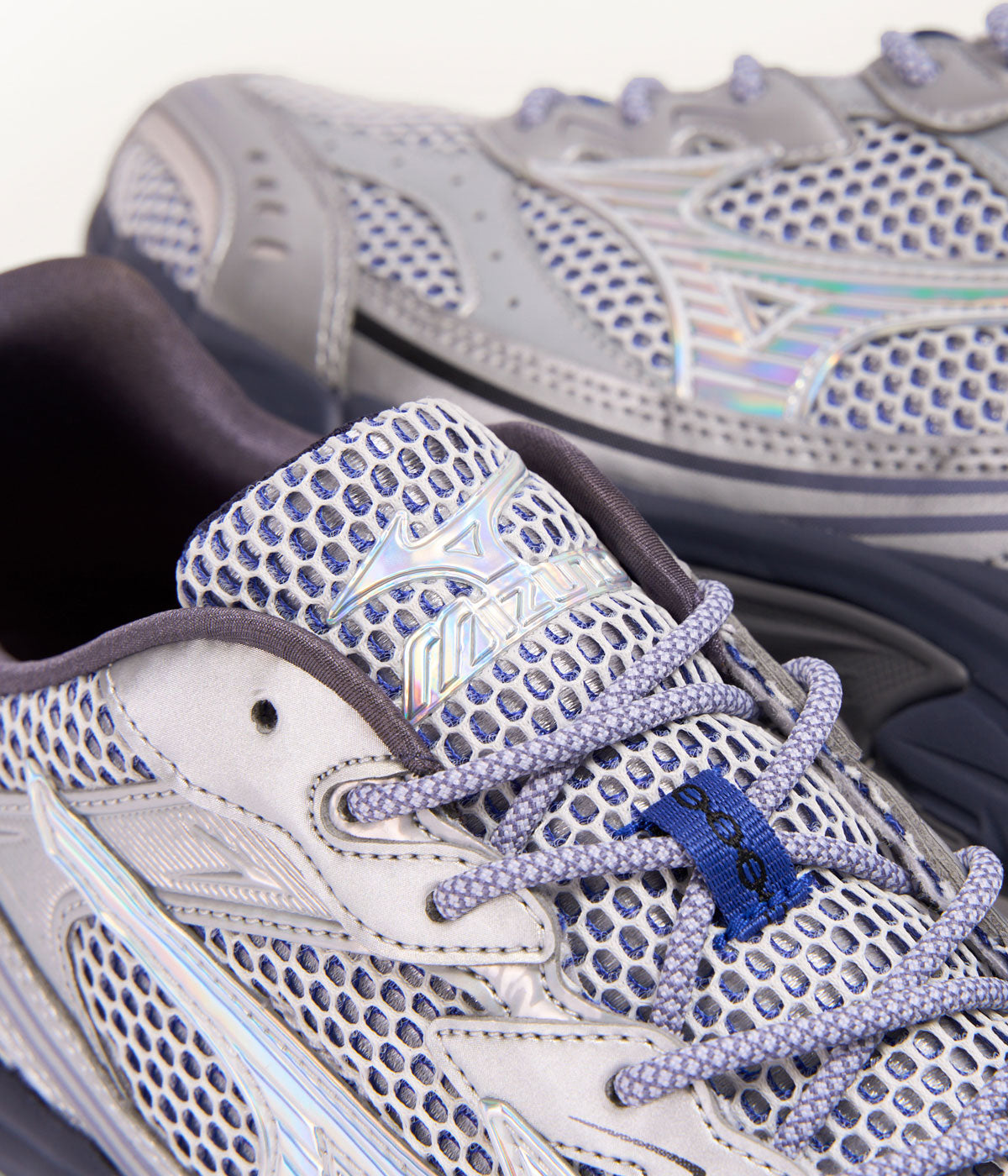 Mizuno Sportstyleから、MXR SPACE PACKが入荷しました。「宇宙」をテーマにレトロテックな雰囲気と2000年代のランニングの美学が融合したモデル。アッパーには、巧みに配色された2トーンのオープンメッシュと、光沢感があり宇宙の輝きを表現したTPUオーバーレイを組み合わせたデザインが特徴で、特殊技術で加工したメタリックディテールや、夜空のグラデーションを表現したプリントインソールが採用されています。