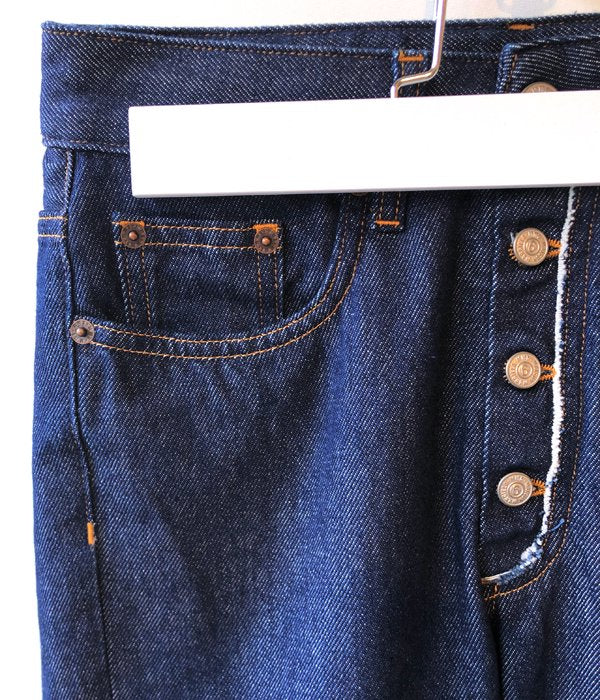 MM6 MAISON MARGIELAから4 BUTTON FLARED DENIM PANTSが入荷しました。フロントのボタンフライがポイントのフレアデニムパンツ。裾のカットオフによるフリンジが抜け感を演出。濃いインディゴカラーが幅広いコーディネートの引き締め役としてマッチします。シルエットの綺麗さを活かす為、ジャストサイズで穿くのがおすすめ。