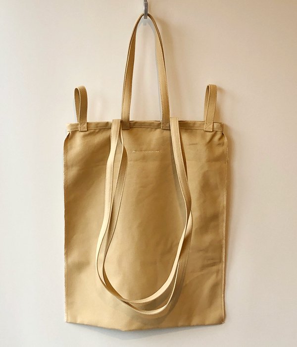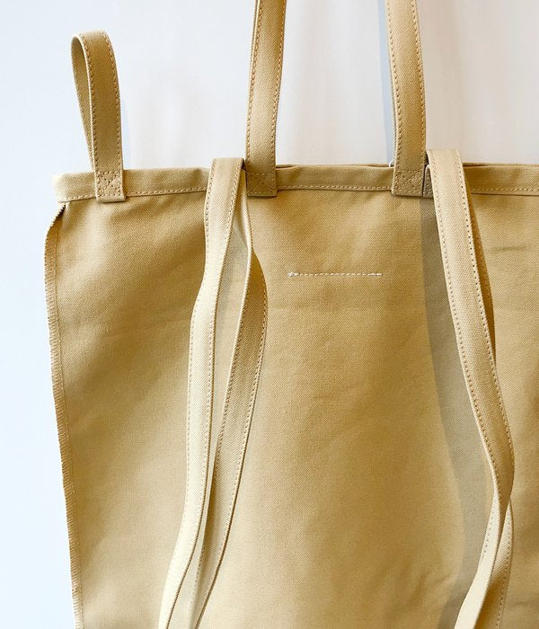 MM6 MAISON MARGIELAからINSIDEOUT LOGO BAGが入荷しました。長さが異なる6本のハンドルで様々な持ち方ができる機能的なコットン製バッグ。現実を覆すインサイドアウト(裏返し)のデザインはロゴのみならずステッチでも表現され、内側から装うというコンセプトを反映しています。マイBAG必須のご時世に嬉しいサイズ感もポイント。
