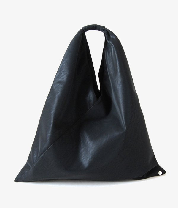 風呂敷から着想のJAPANESE TOTE BAG。マットなツヤのある合皮使用で上品な印象。軽くて柔らかい素材なので、付属のスナップボタンを留めたり、パタッと2つ折りにしてクラッチバッグのようにしてみたり、フォルムを自由に変えられるバッグです。