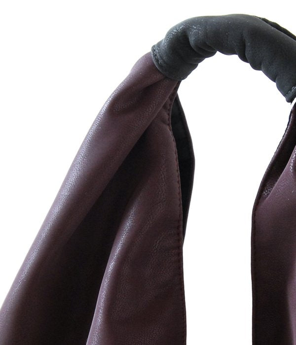 風呂敷から着想のJAPANESE TOTE BAG。マットなツヤのある合皮使用で上品な印象。軽くて柔らかい素材なので、付属のスナップボタンを留めたり、パタッと2つ折りにしてクラッチバッグのようにしてみたり、フォルムを自由に変えられるバッグです。