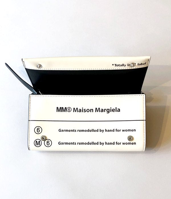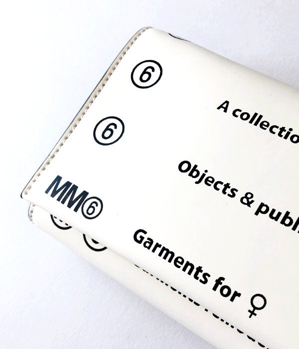MM6のグラフィックロゴがプリントされた長財布。収納力があり、付属のチェーンを使い肩に掛けても使える2WAY仕様。何と言っても、コレクションラインを表すカレンダータグを全部MM6に変えてしまうというユニークな発想に心くすぐられます。
