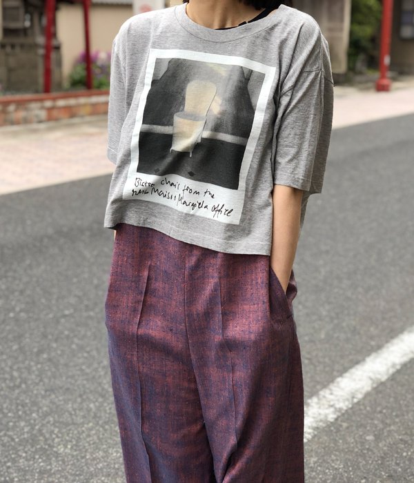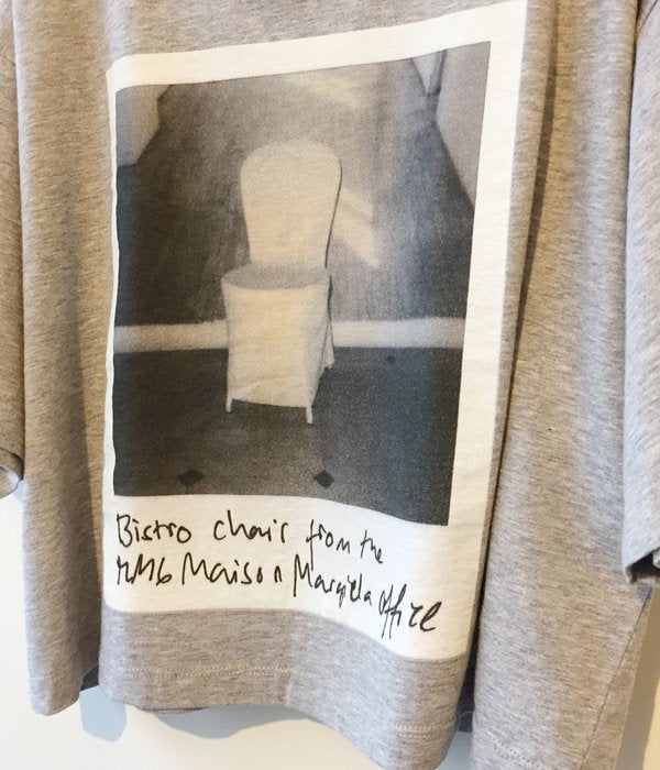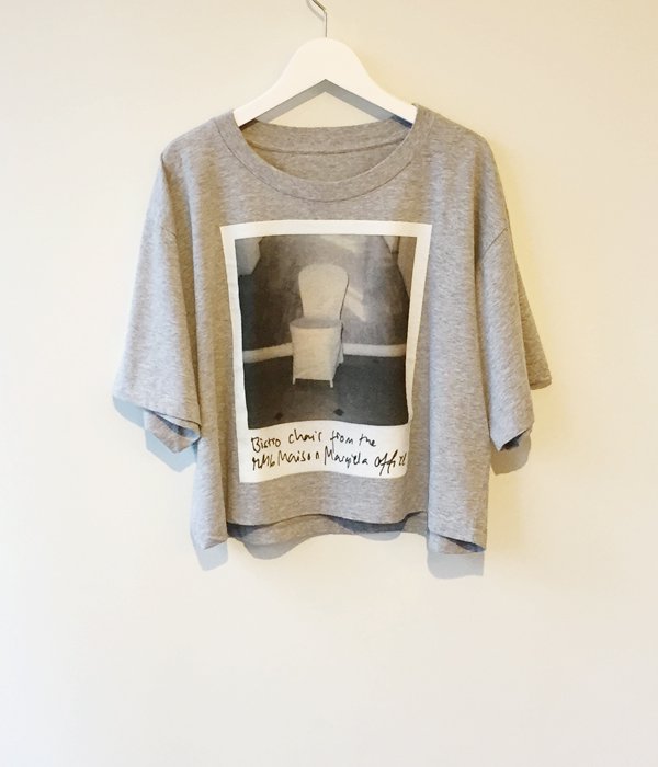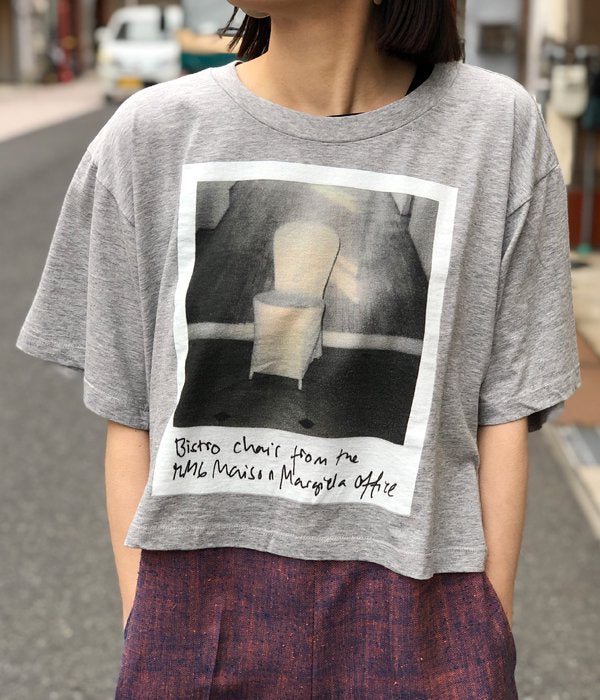 メゾンのオフィスにあるビストロチェアーを写したポラロイド写真がプリントされたショート丈のS/S TEE。質の良いコットンを使い着心地はふわっと滑らか。絶妙なバランス感を放つシルエットにマルジェラらしさを感じる一枚。