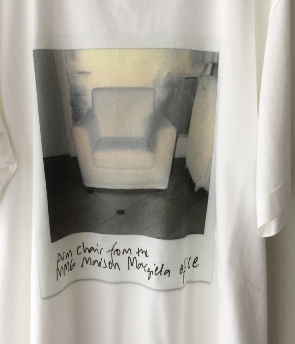 メゾンのオフィスにあるアームチェアーを写したポラロイド写真がプリントされたS/S TEE。質の良いコットンを使い着心地はふわっと滑らか。ビッグシルエットながら野暮ったくならないパターンメイキングはマルジェラだからこそ成せる業、と思わせてくれます。