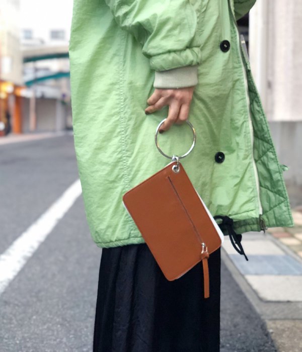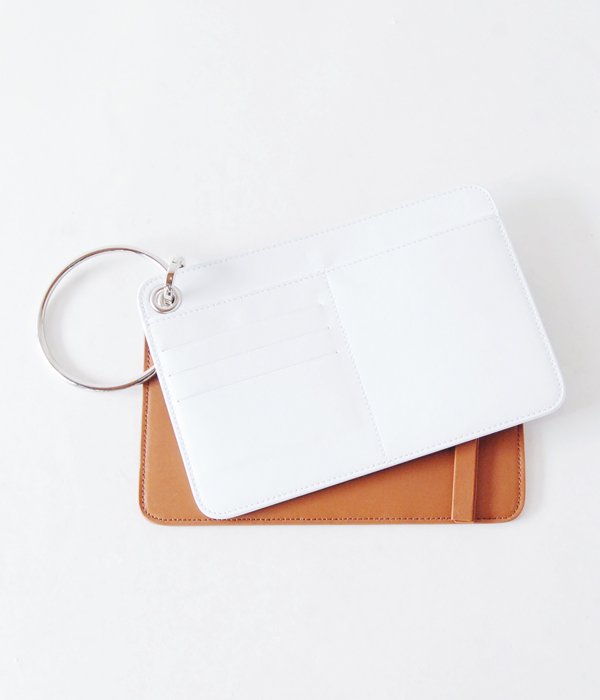 2つのケースがリングでまとめてある、ユニークな財布。コニャックカラーの方はジップ付収納ポケット、ホワイトカラーの方にはカードポケットと多目的ポケットが完備。リングは取り外し可能でそれぞれを別々に持つことも出来ます。