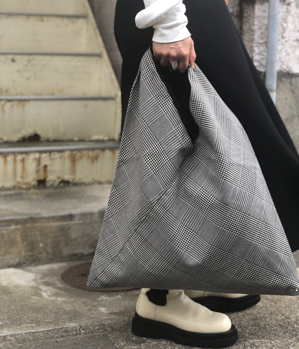 MM6 MAISON MARGIELA/TARTAN WOOL JAPANESE TOTE BAG(BLACK×WHITE)