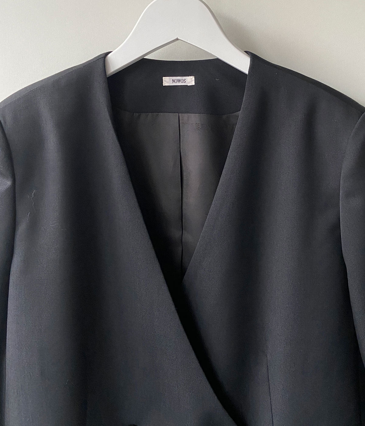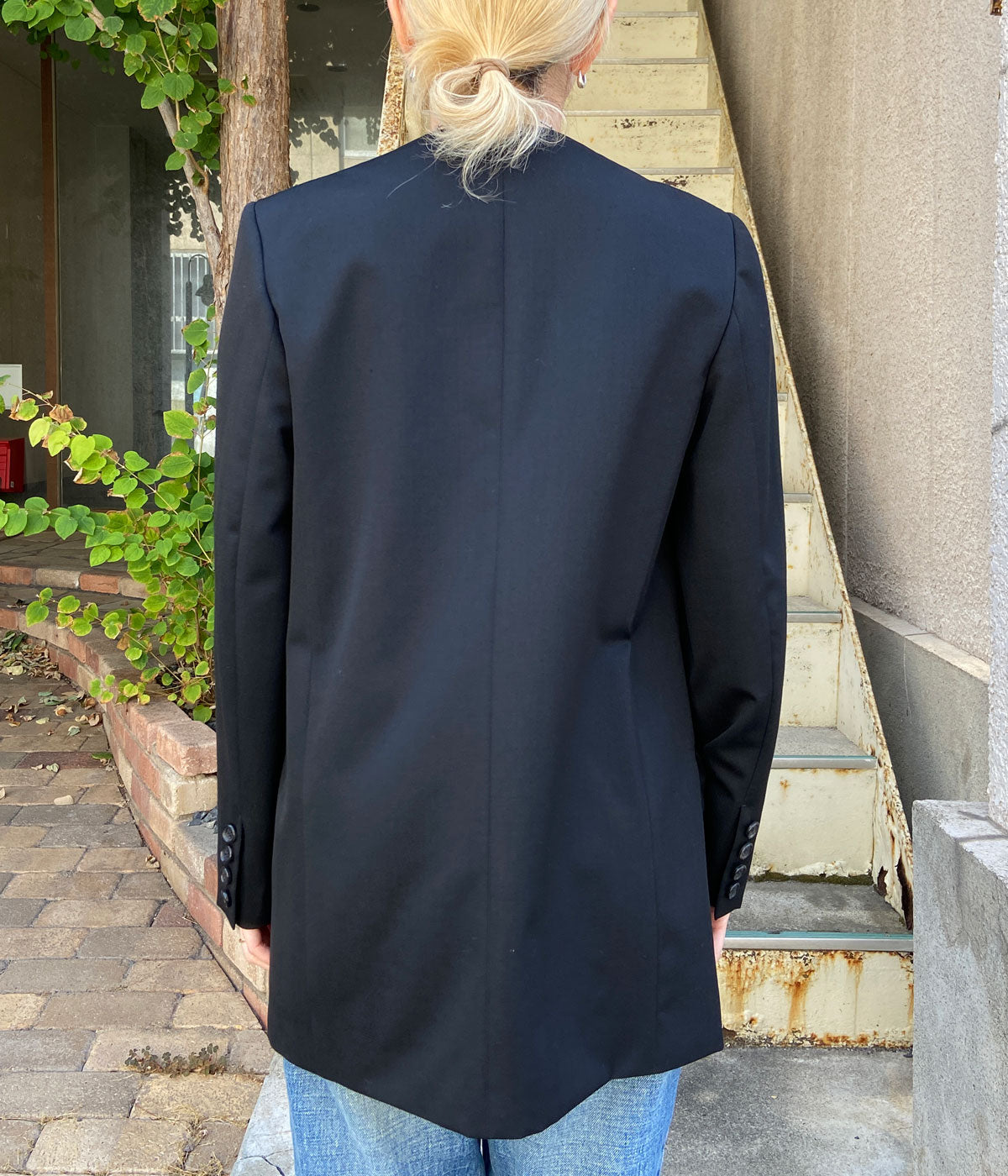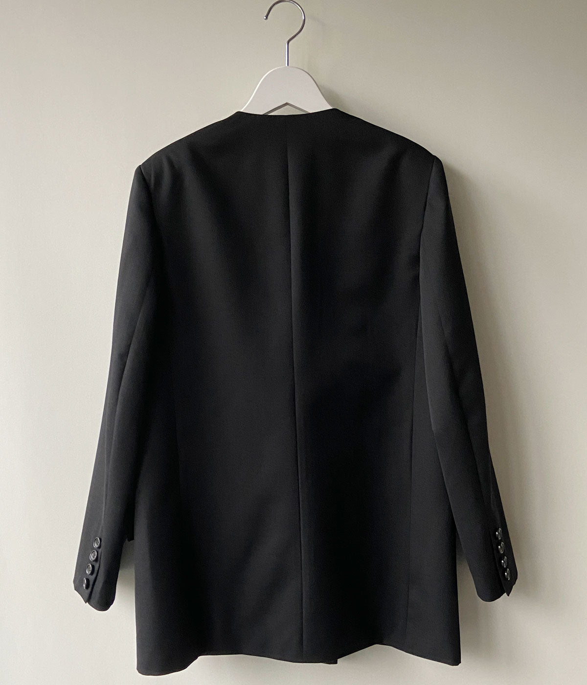 nowosからBLACK JACKETが入荷しました。さらっとした着心地のノーカラージャケット。ダブルボタンでかっちりとした雰囲気がありつつ、ノーカラーで抜け感を。様々なシーンで活躍する便利な一枚です。