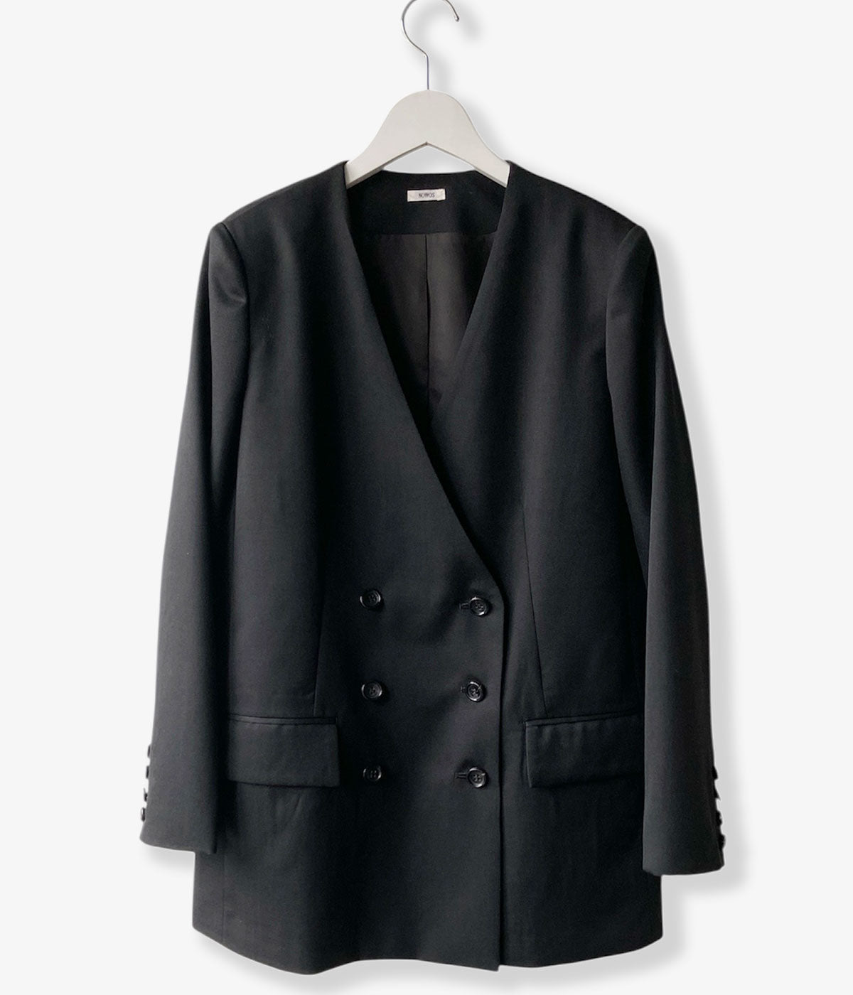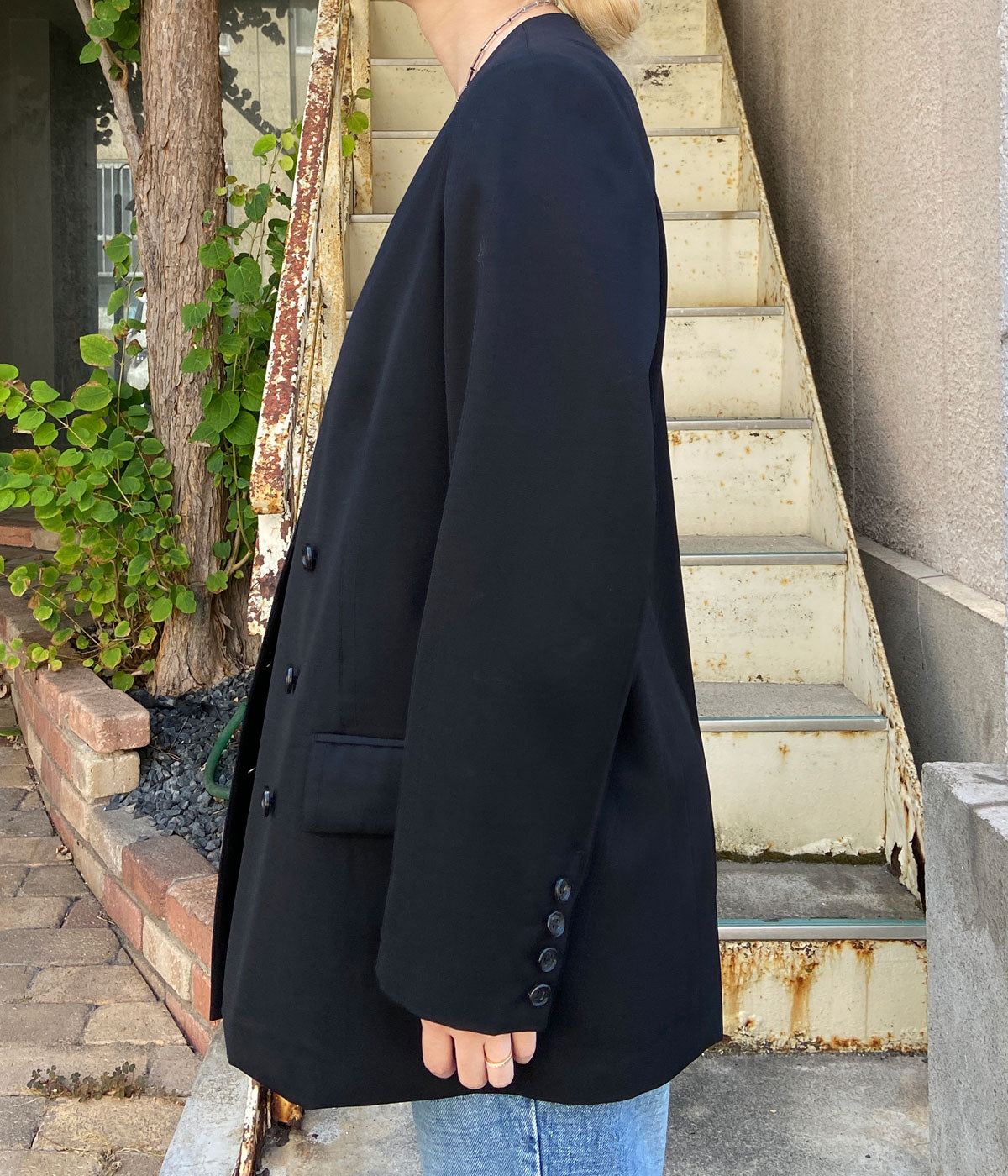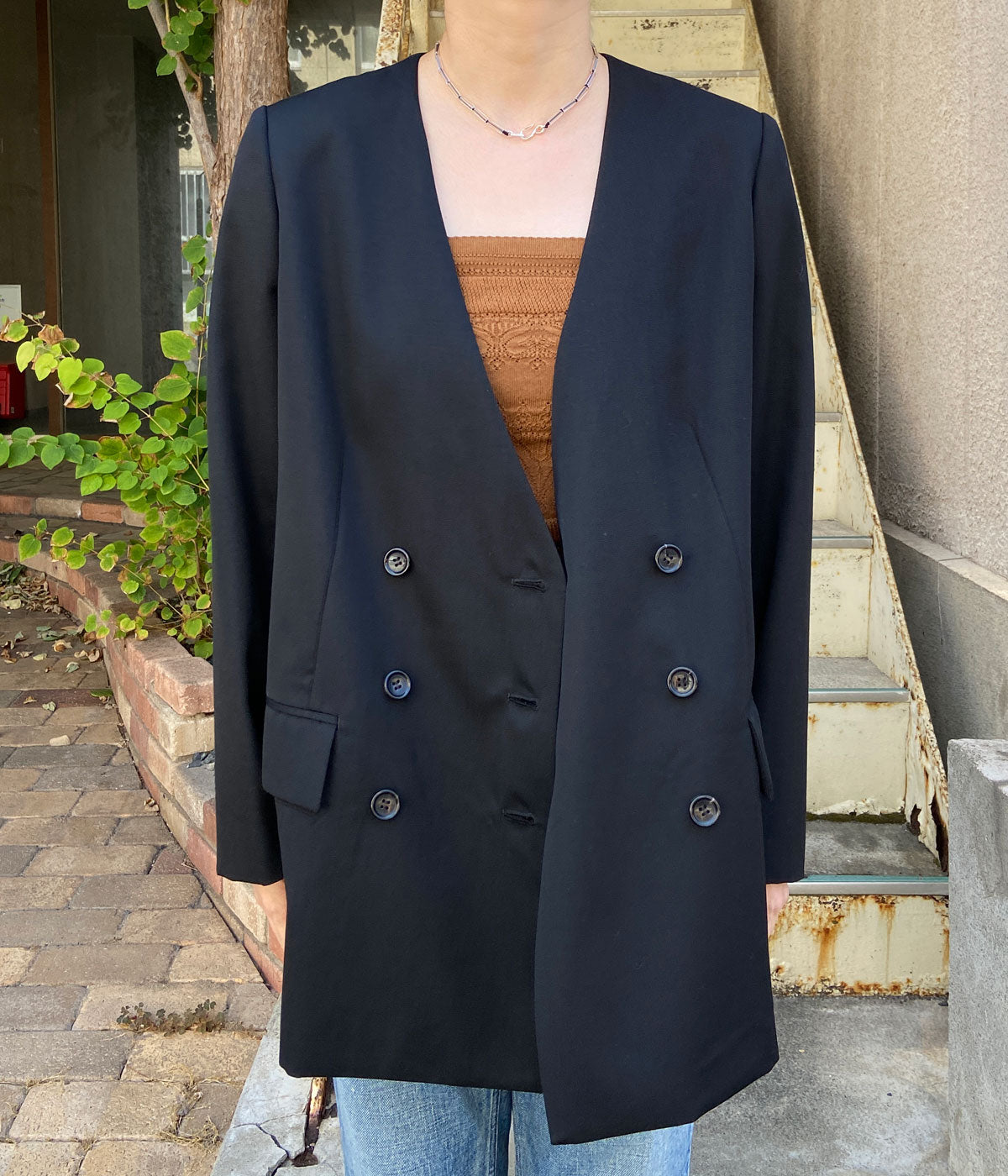 nowosからBLACK JACKETが入荷しました。さらっとした着心地のノーカラージャケット。ダブルボタンでかっちりとした雰囲気がありつつ、ノーカラーで抜け感を。様々なシーンで活躍する便利な一枚です。