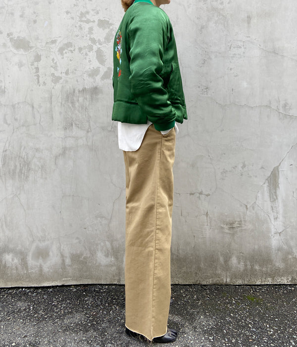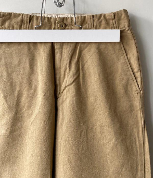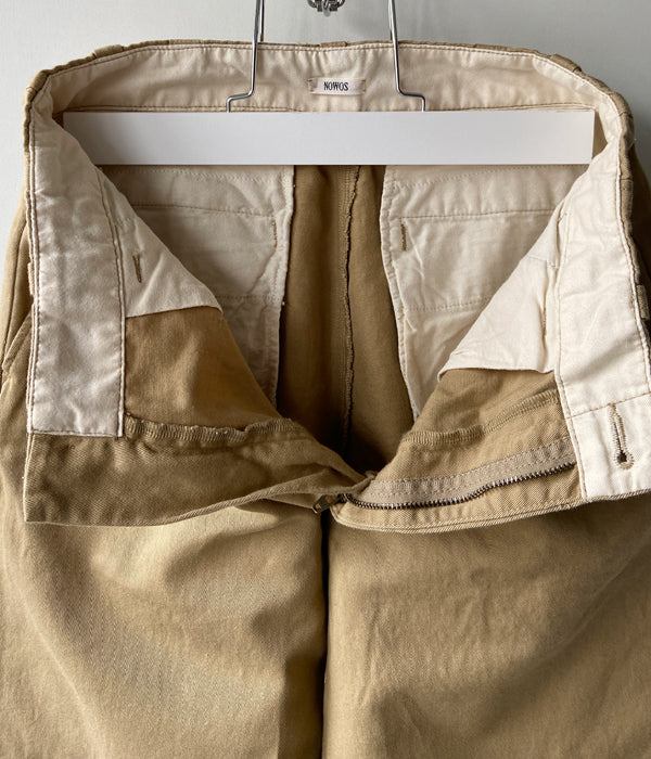 nowosからCHINO PANTSが入荷しました。ワイドシルエットのチノパンツはnowosの定番。今回は切りっぱなしの裾がアクセントに。履き込んで味を出したい一本です。持っていると重宝すること間違いなし。