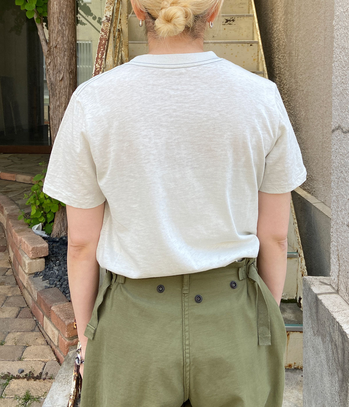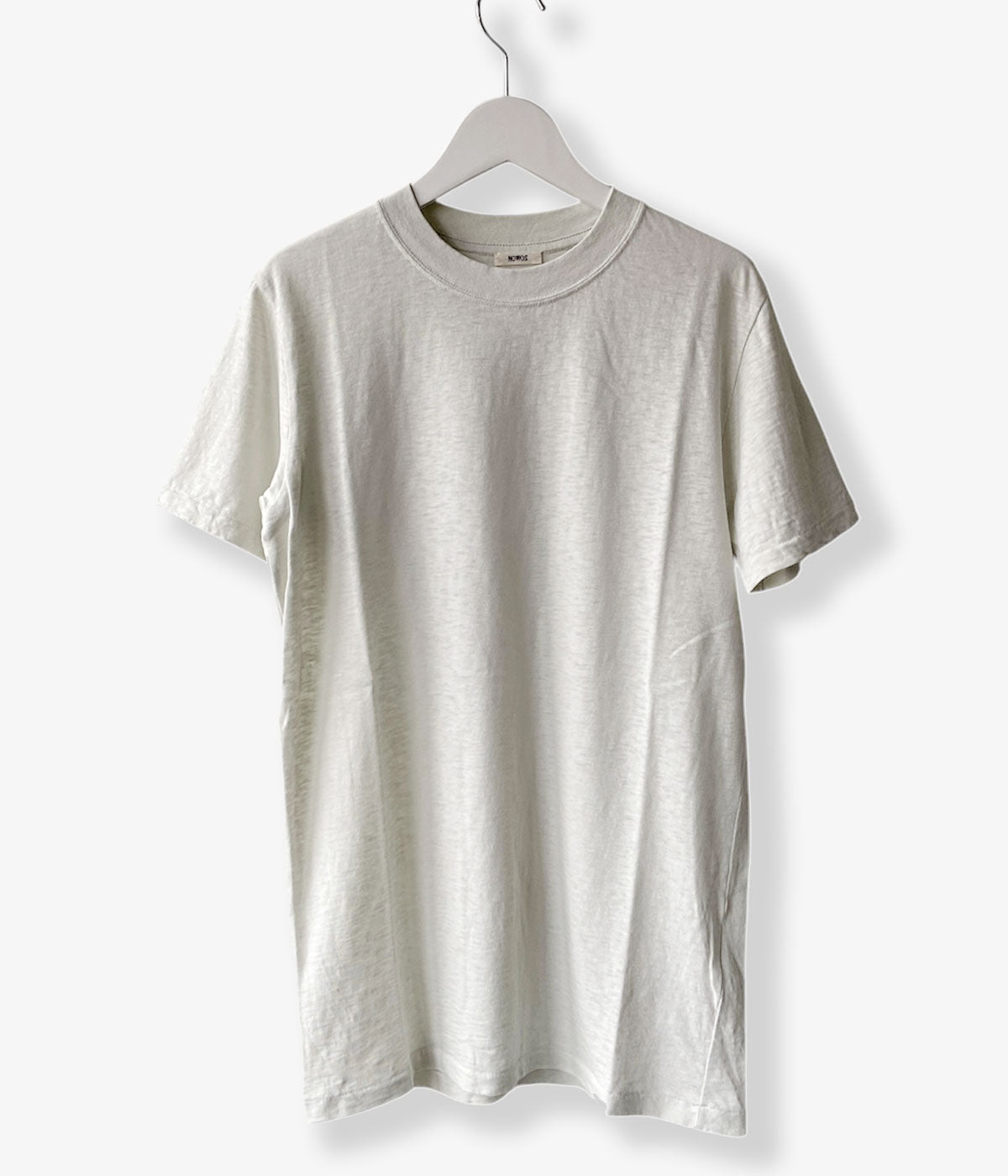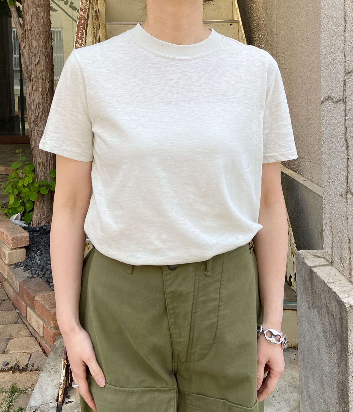 nowosからCREW NECK T-SHIRTが入荷しました。定番で人気の無地Tシャツ。柔らかく、肌触りの良いTシャツは何枚でも欲しくなりそう。着丈が長めでボトムにインしやすいのも〇。程よい透け感のある一枚です。