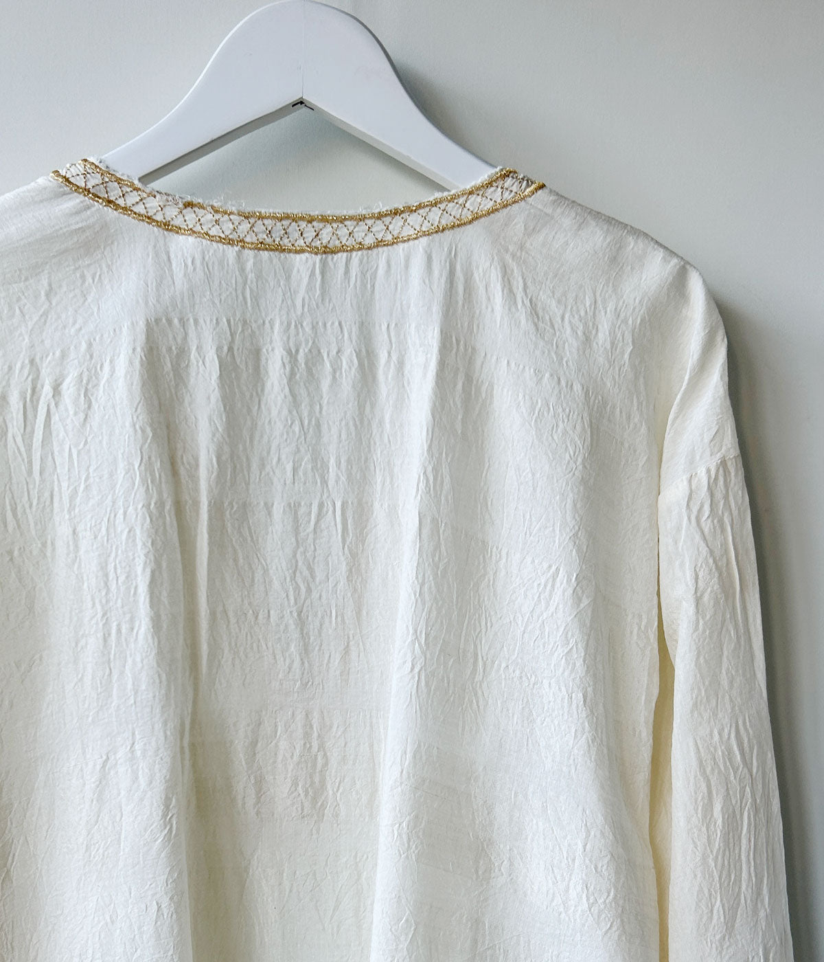 nowosからEMBROIDERD BLOUSEが入荷しました。繊細な刺繍が静かに浮かび上がるブラウス。丁寧に施された刺繍が、素朴さの中に凛とした美しさを添えます。柔らかな生地感とゆとりのあるシルエットが、肩の力を抜いた自然体の佇まいに。一枚でさらりと着ても、羽織りのインナーとしても。デニムと合わせたラフなスタイルから、スラックスやロングスカートとの上品な着こなしまで幅広く馴染みます。装いにさりげない奥行きを与えてくれる、ワードローブに加えたい一着。