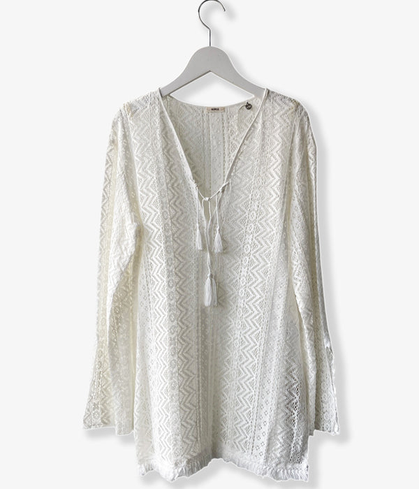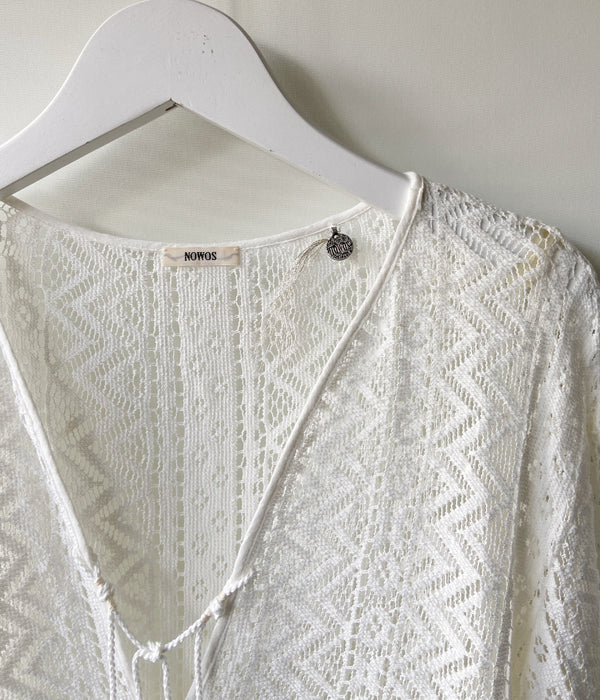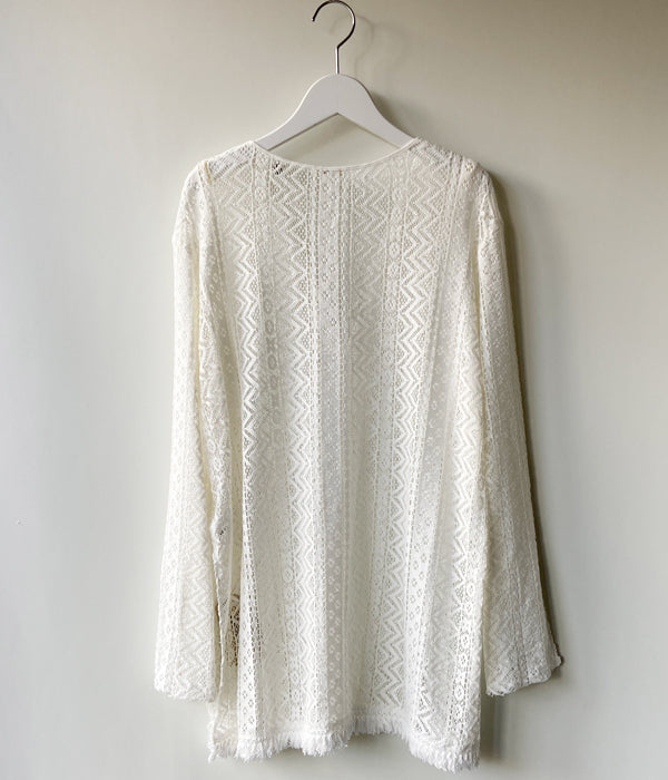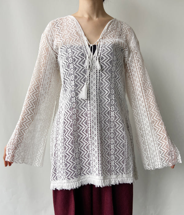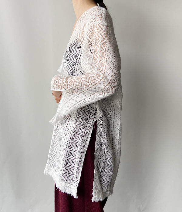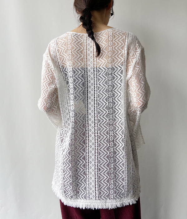 nowosからLACE BLOUSEが入荷しました。Vネックの総レースブラウス。裾と袖のスリットでヘルシーかつ上品な印象。主役としてはもちろん、インナーにも活躍する一枚です。さらりと嫌味が無く着れるおすすめのアイテム。