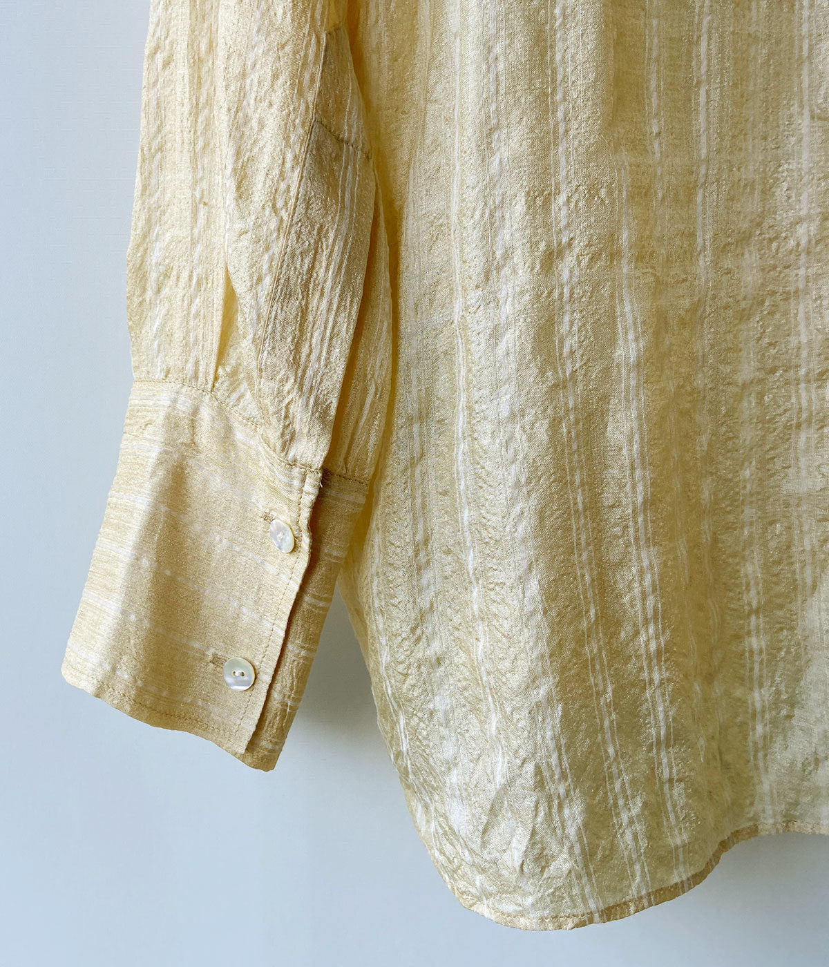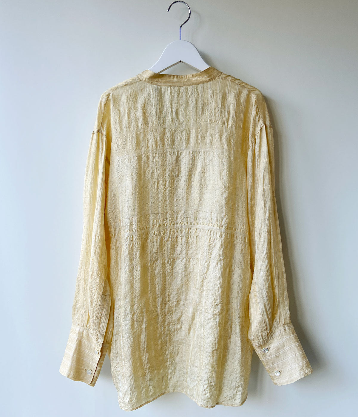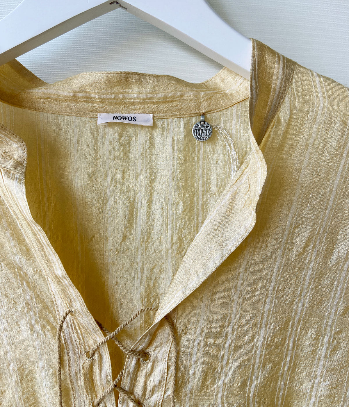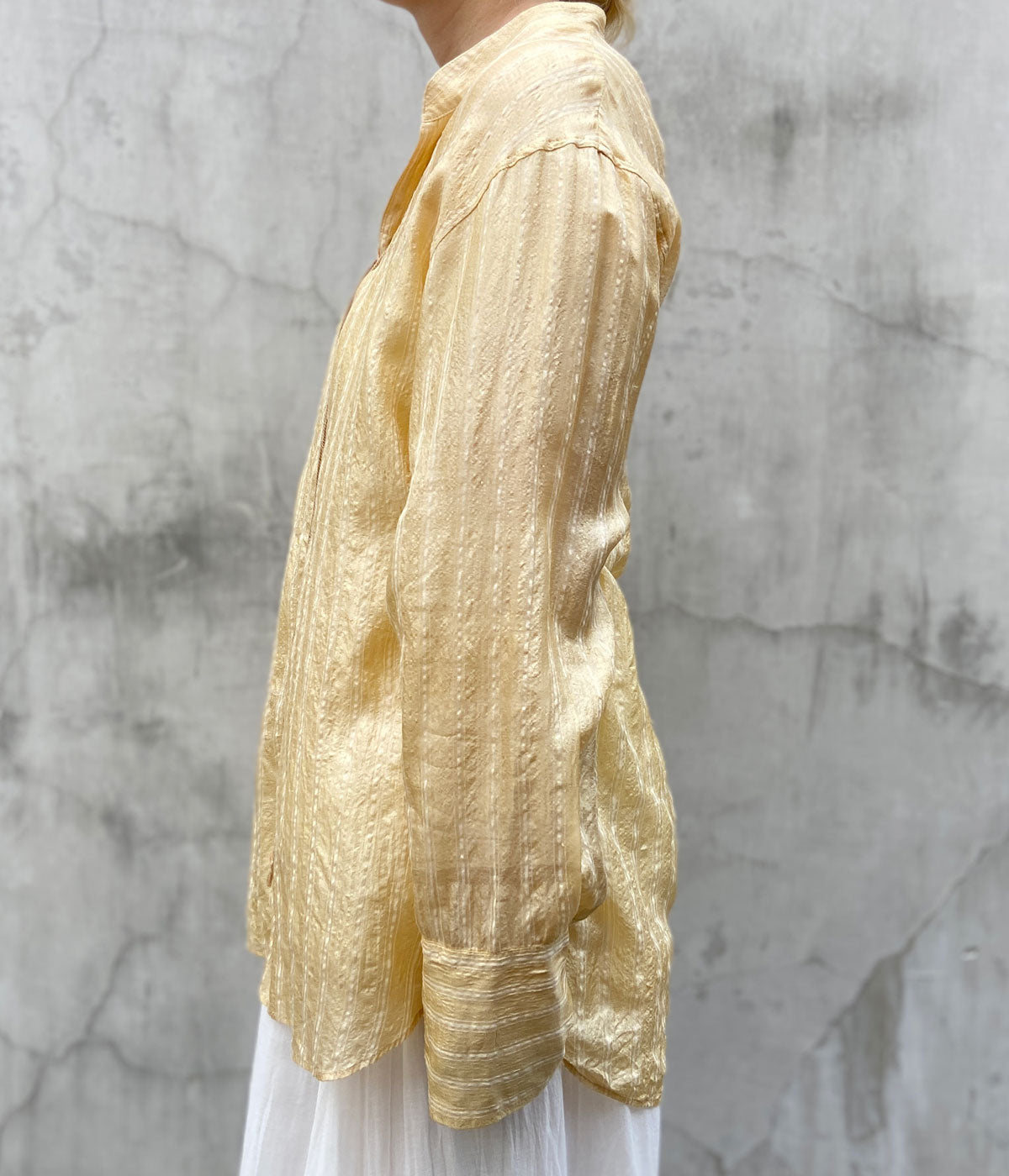 nowosからLACE UP SHIRTが入荷しました。コットンシルクでさらっとした着心地のレースアップシャツ。うっすらストライプのベージュカラーが大人の着こなしを楽しめます。ジャケットや羽織のインナーとしても活躍する一枚。