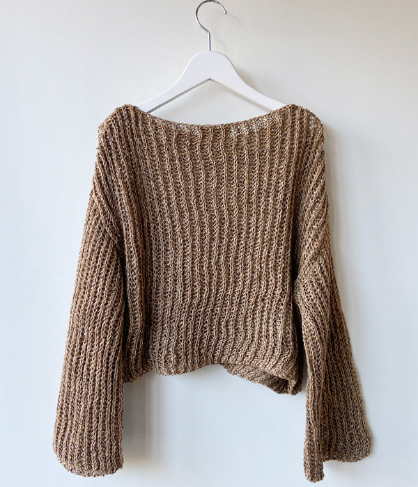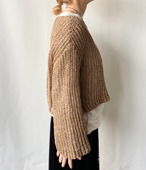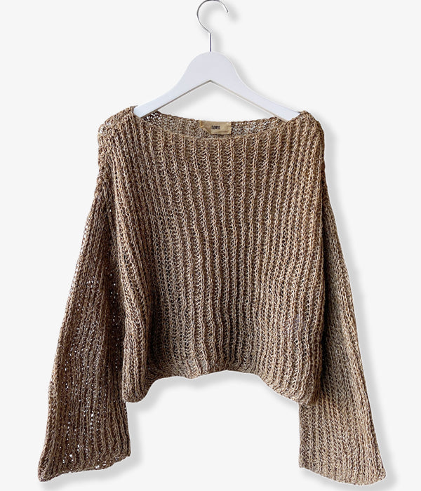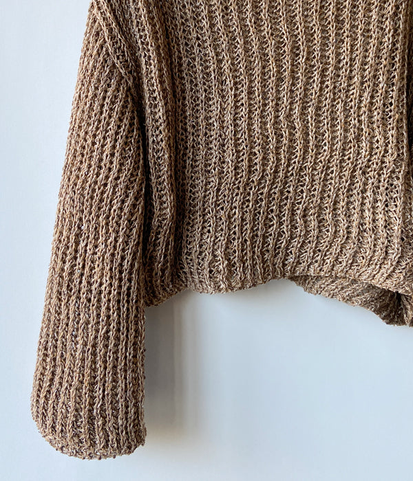 nowosからMIX SWEATERが入荷しました。肩の力の抜けたリラックスムード漂うセーター。シルクとコットンのミックス糸でざっくり編み込まれ、緩さの中にも上品さが光ります。ショート丈なので、インナー次第で雰囲気の変わる一枚。