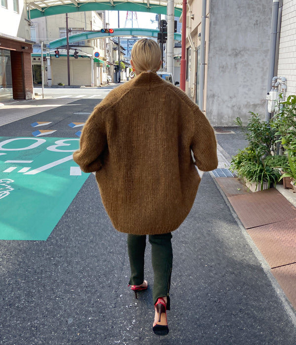 nowosからMOHAIR GOWNが入荷しました。たっぷりボリュームのあるモヘアガウン。身体を覆うように作られたシルエットがたまらなく可愛いアイテムです。着丈もあるのでボトムはコンパクトにまとめるとバランスが取りやすい。リブニットパンツとの組み合わせもおすすめです。