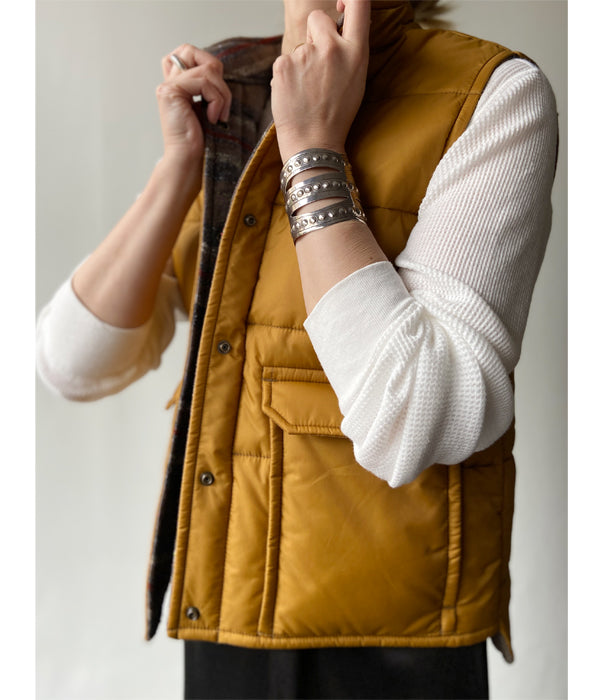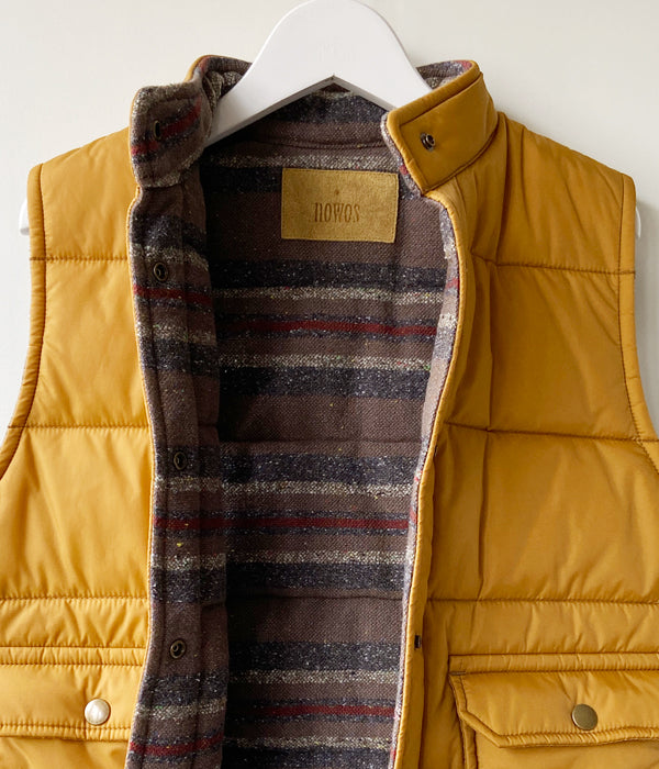 nowosからNYLON VESTが入荷しました。何かと着回しのきくナイロンベスト。インナーにニットやシャツはもちろん、ジャケットの上に重ねるのもおすすめ。懐かしくも感じるシルエットと色味が今の気分にハマります。裏地はウール混のボーダー柄。裏返して着用するのも〇