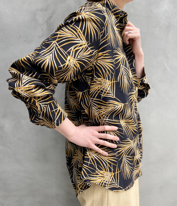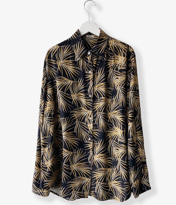 nowosからPRINTED SHIRTが入荷しました。RAYON100%でドレープ感のあるシャツ。総柄で派手さはありますが、黒ベースなので大人の雰囲気。体が泳ぐサイズ感で余裕を感じさせます。他をシンプルにまとめて際立たせて着たい一枚。