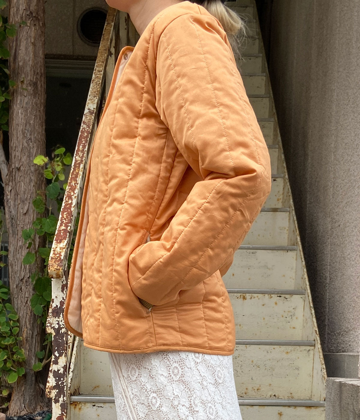nowosからQUILTED JACKETが入荷しました。インナージャケットから着想を得たキルティングジャケット。ありそうで無かったくすんだオレンジ色が合わせやすい。目を惹く一着です。