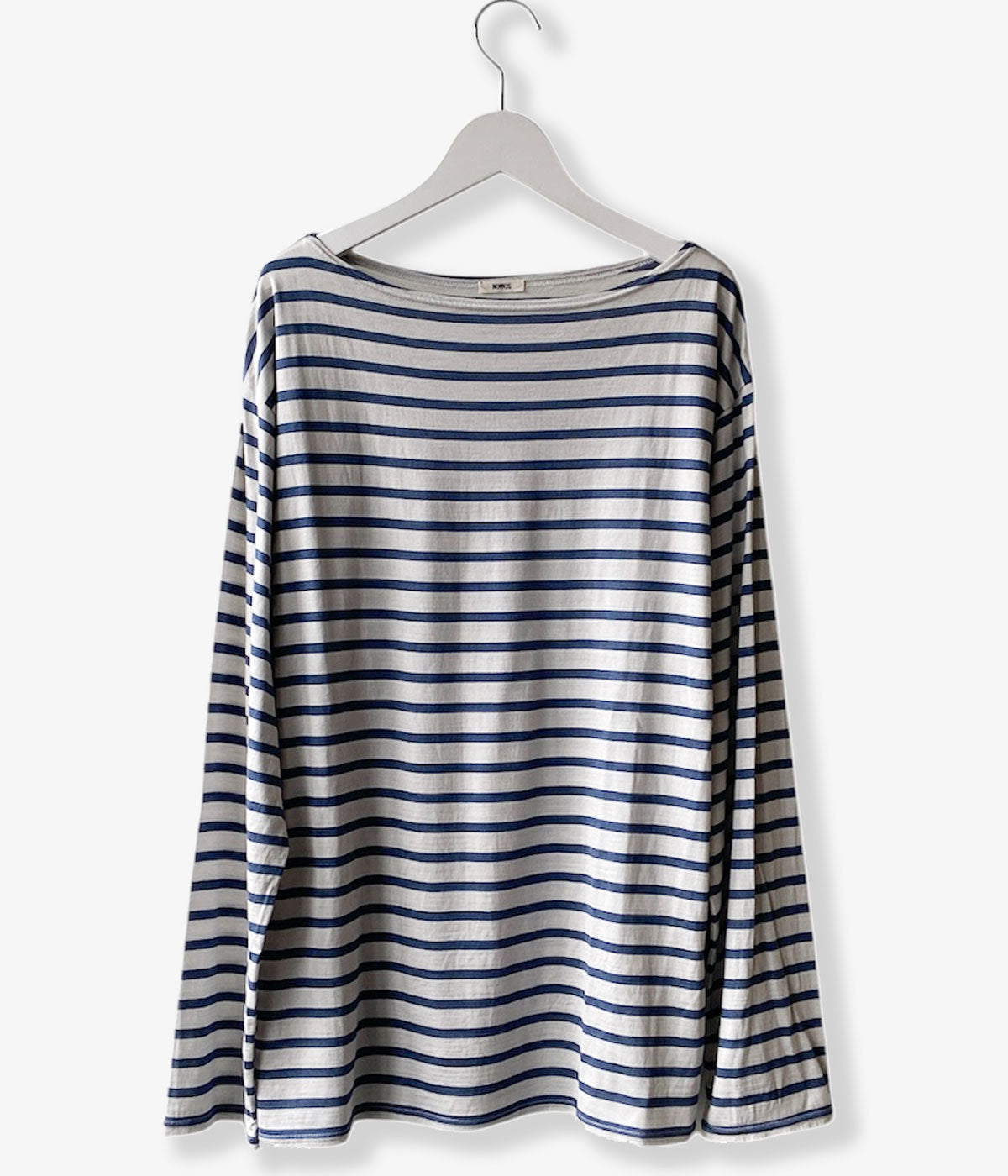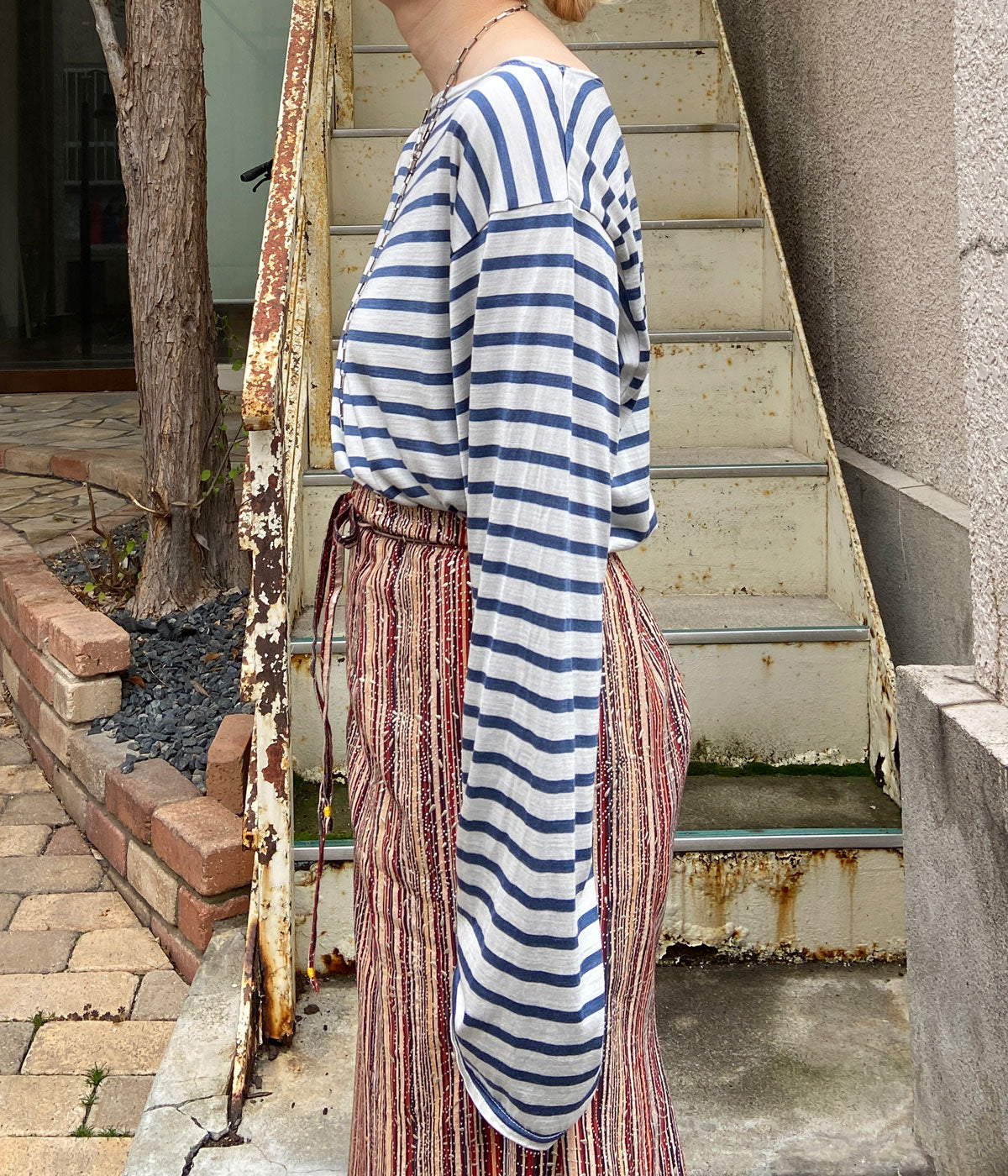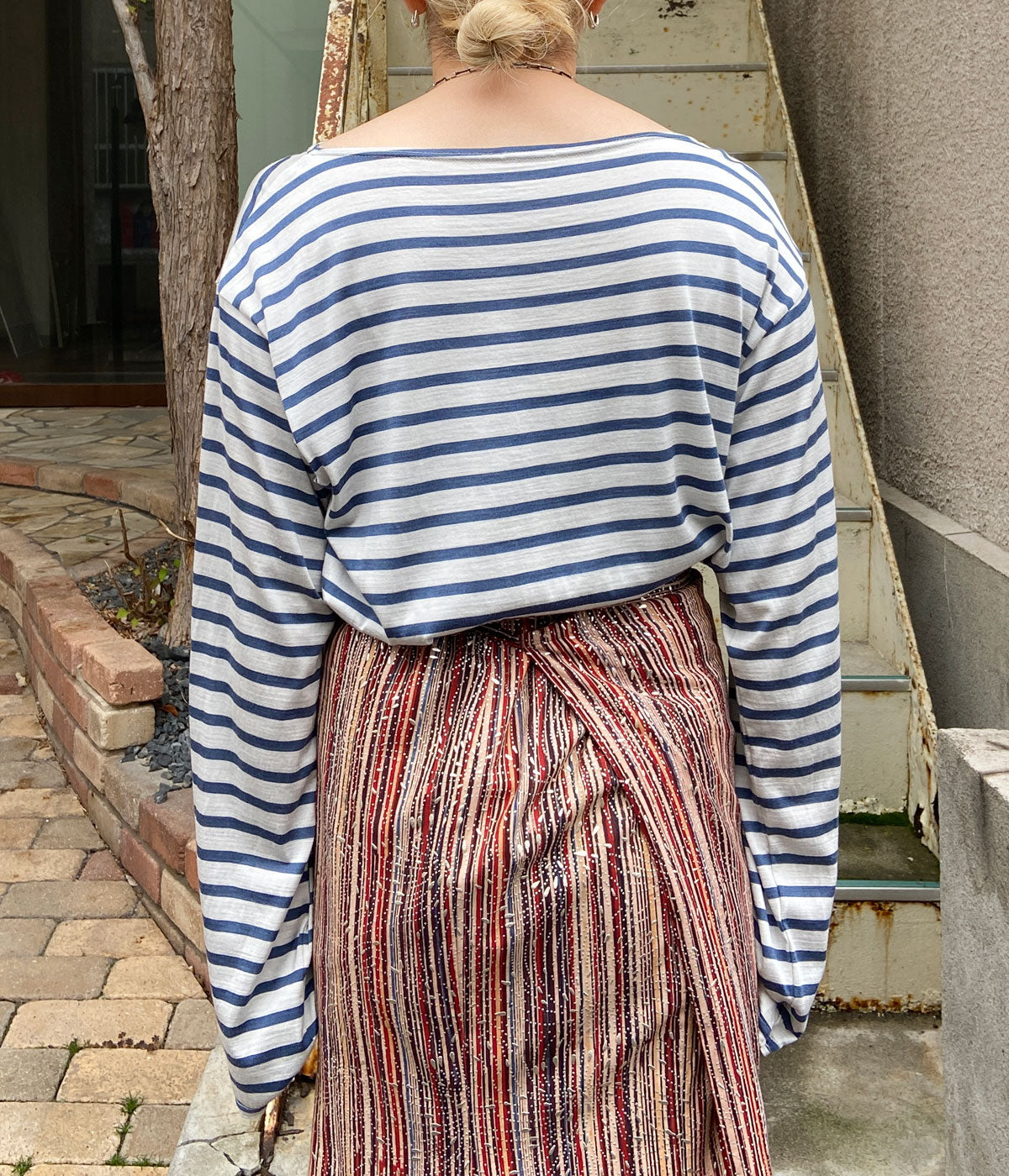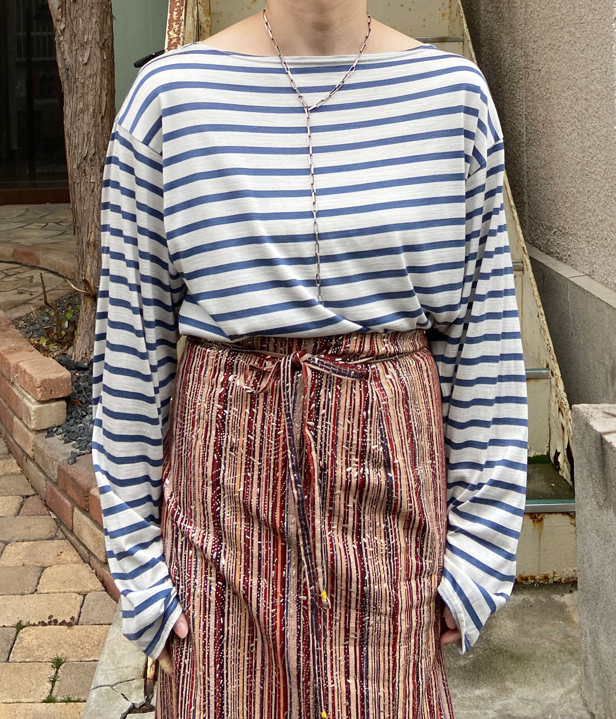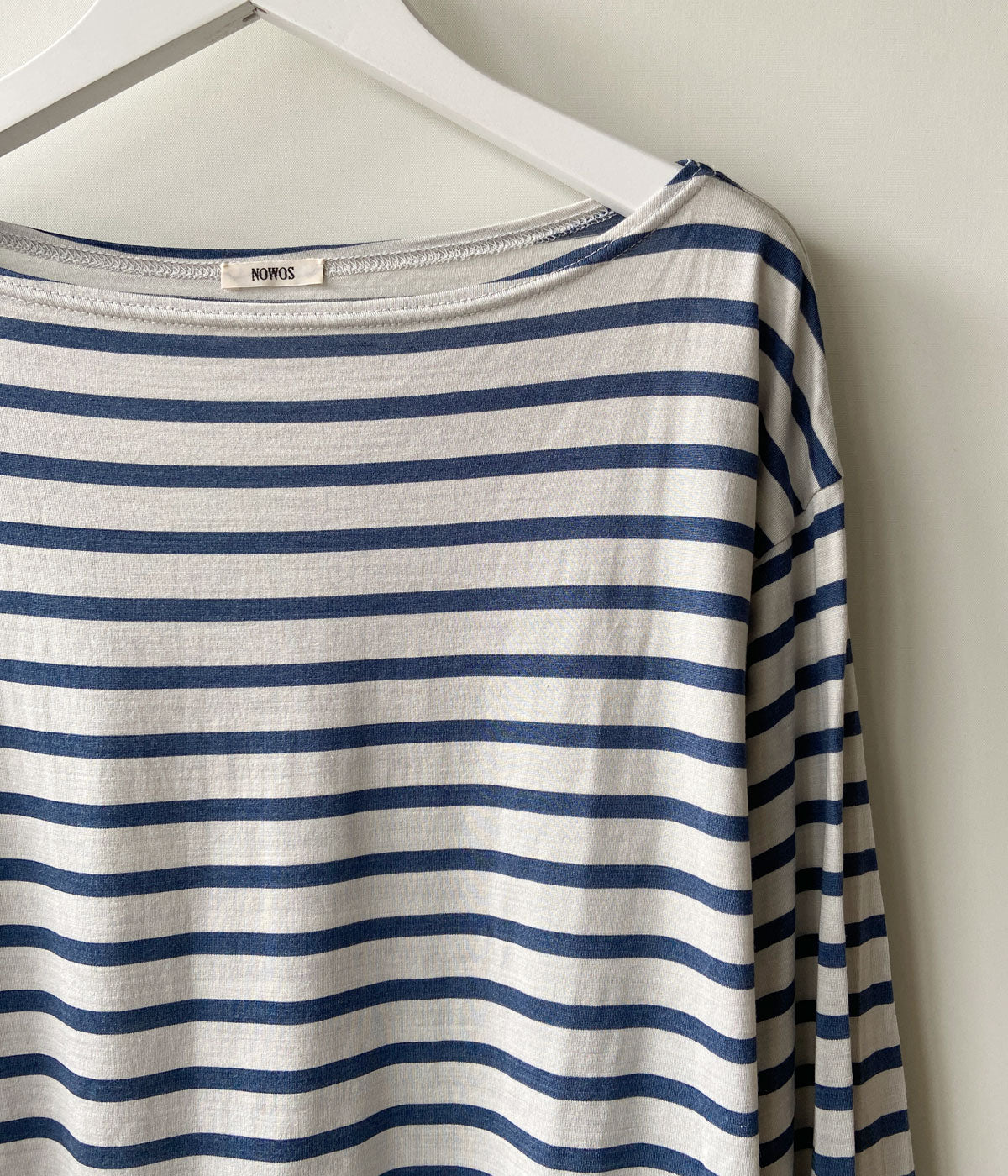 nowosからSTRIPE TOPが入荷しました。シルク100%のボーダートップス。ゆるっとしたサイズ感、シルク生地の落ち感、広めにとった肩の開き、計算しつくされた大人のためのアイテムです。普段ボーダーが苦手な方に挑戦していただきたい一枚。
