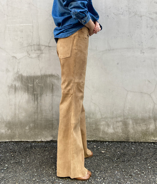 nowosからSUEDE PANTSが入荷しました。滑らかで柔らかなスウェードを使ったフレアーパンツ。履き心地が良くシルエットも優秀。シンプルなトップスを合わせても様になる一本です。一生ものになること間違いなし。