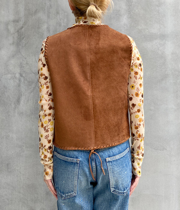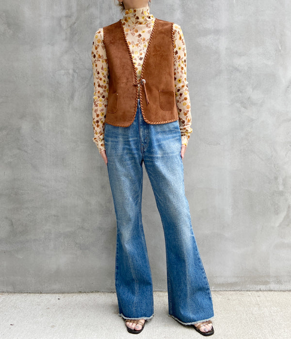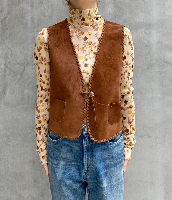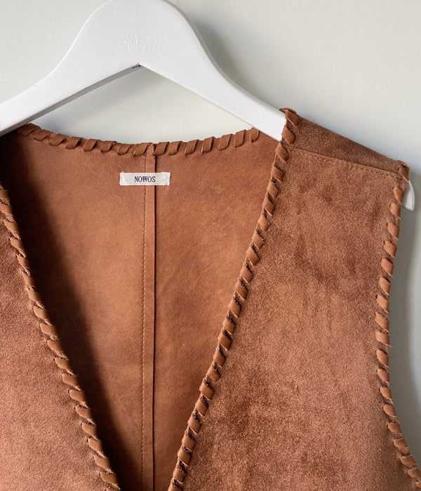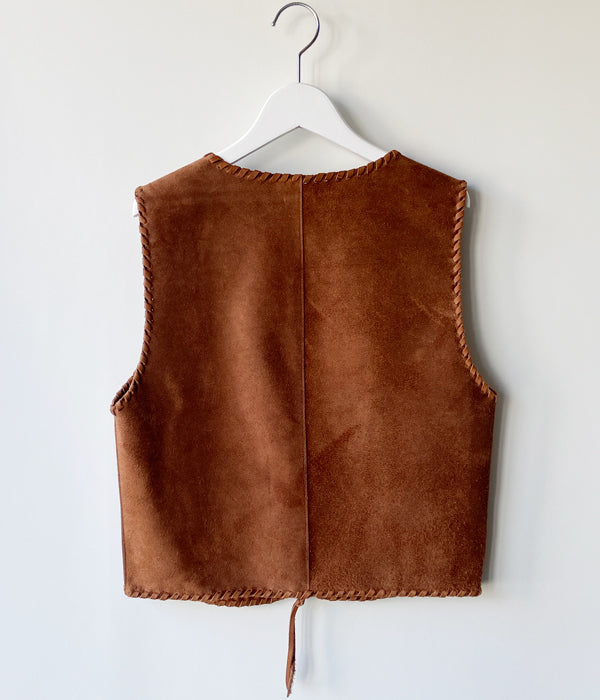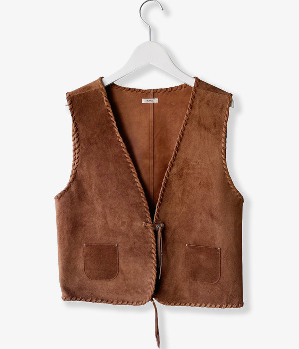 nowosからSUEDE VESTが入荷しました。しなやかなカウレザーのスウェードベスト。フロントのコンチョボタン、裾をぐるりと囲んだレザー紐がポイント。インナーにはシンプルにサーマルでも、ニットでも。中に着込めるサイズ感が嬉しい。ぐっと秋めいた雰囲気になる一着です。