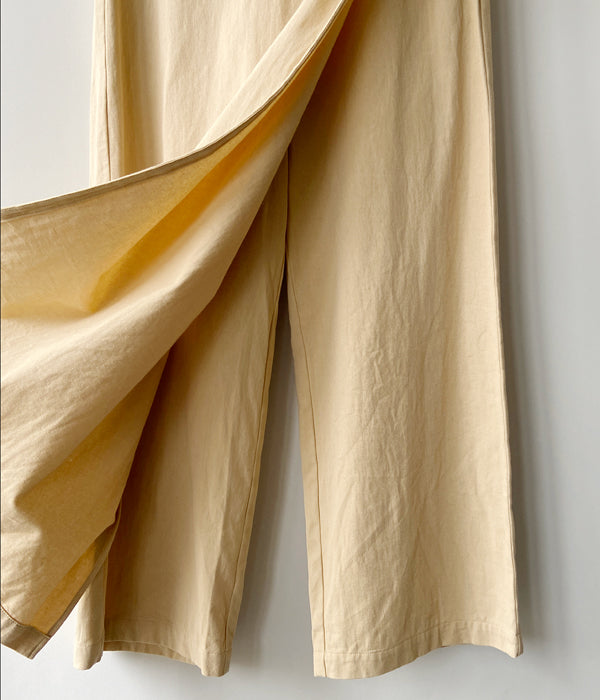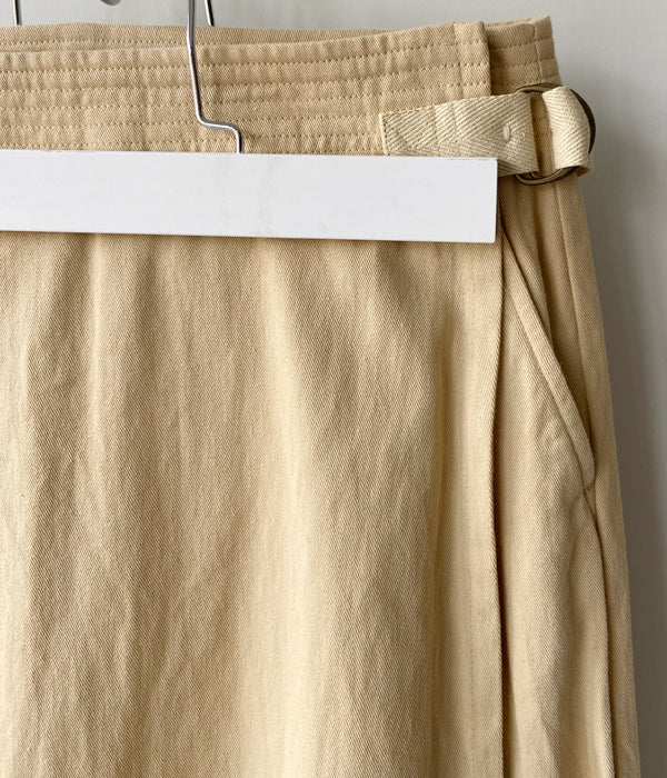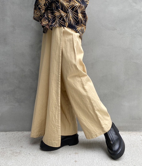 nowosからWRAP PANTが入荷しました。前から見るとスカート、後ろから見るとパンツの凝ったデザイン。シルエットが美しく、美脚効果抜群です。トップスをインしてウエストを見せて履くとバランスがとりやすい。シンプルなコーディネートによく映える一本です。