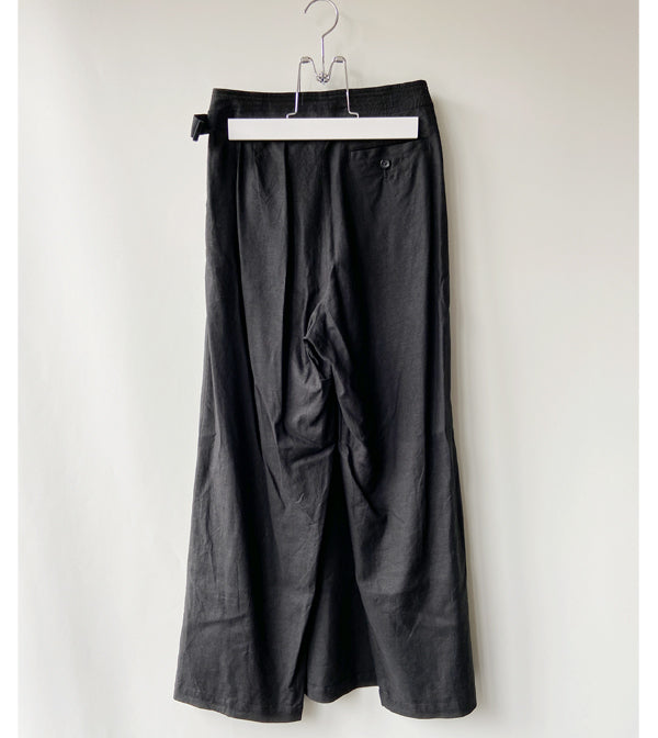 nowosからWRAP PANTが入荷しました。前から見るとスカート、後ろから見るとパンツの凝ったデザイン。シルエットが美しく、美脚効果抜群です。トップスをインしてウエストを見せて履くとバランスがとりやすい。シンプルなコーディネートによく映える一本です。
