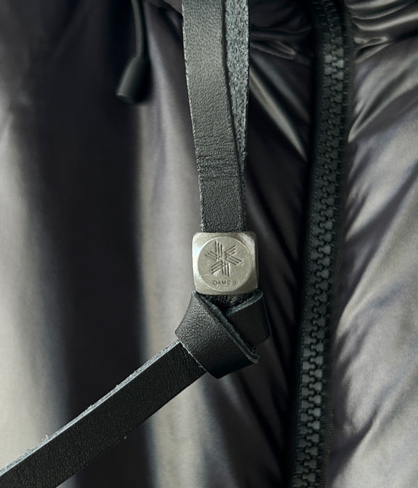 【素材】表地:ナイロン100%、中わた:ダウン80% フェザー20%、裏地:ナイロン100%、皮革部分:牛革