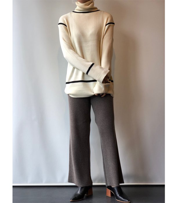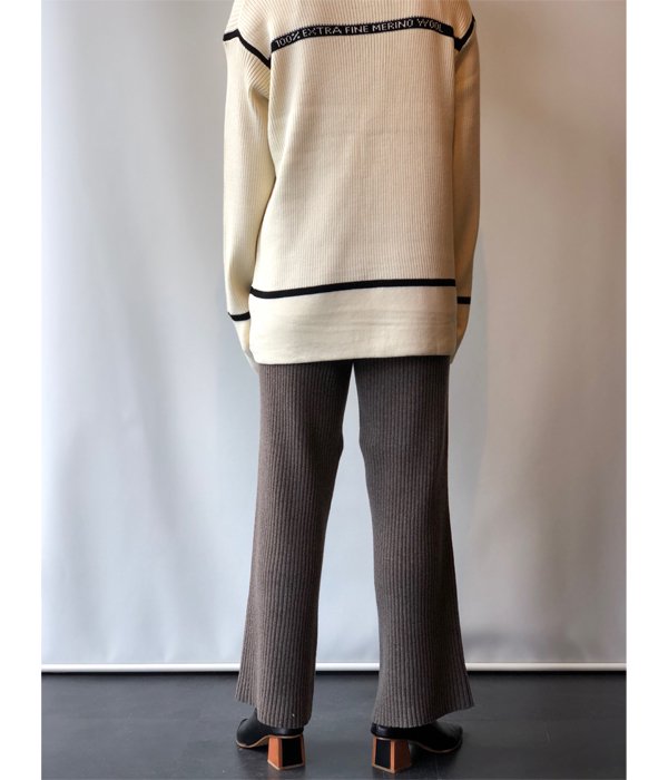 ハイゲージのリブ組織で編んだニットパンツ。腿から裾にかけて抜け感のあるストレートシルエットです。ウールの暖かさ、柔らかさが心地良くデイリーに使える一枚。